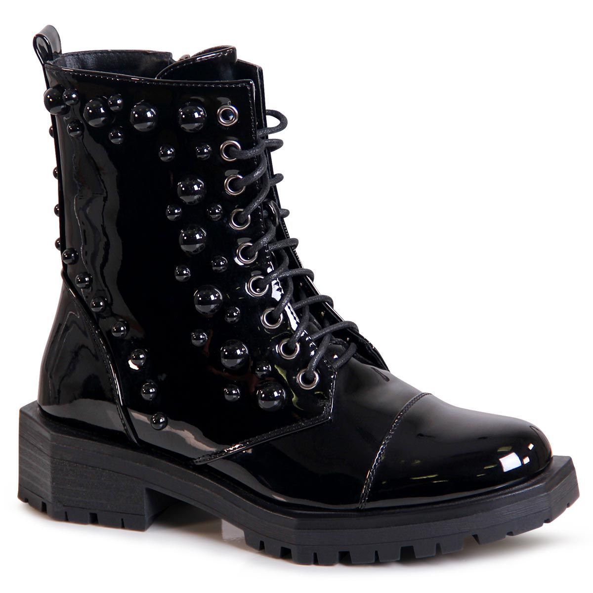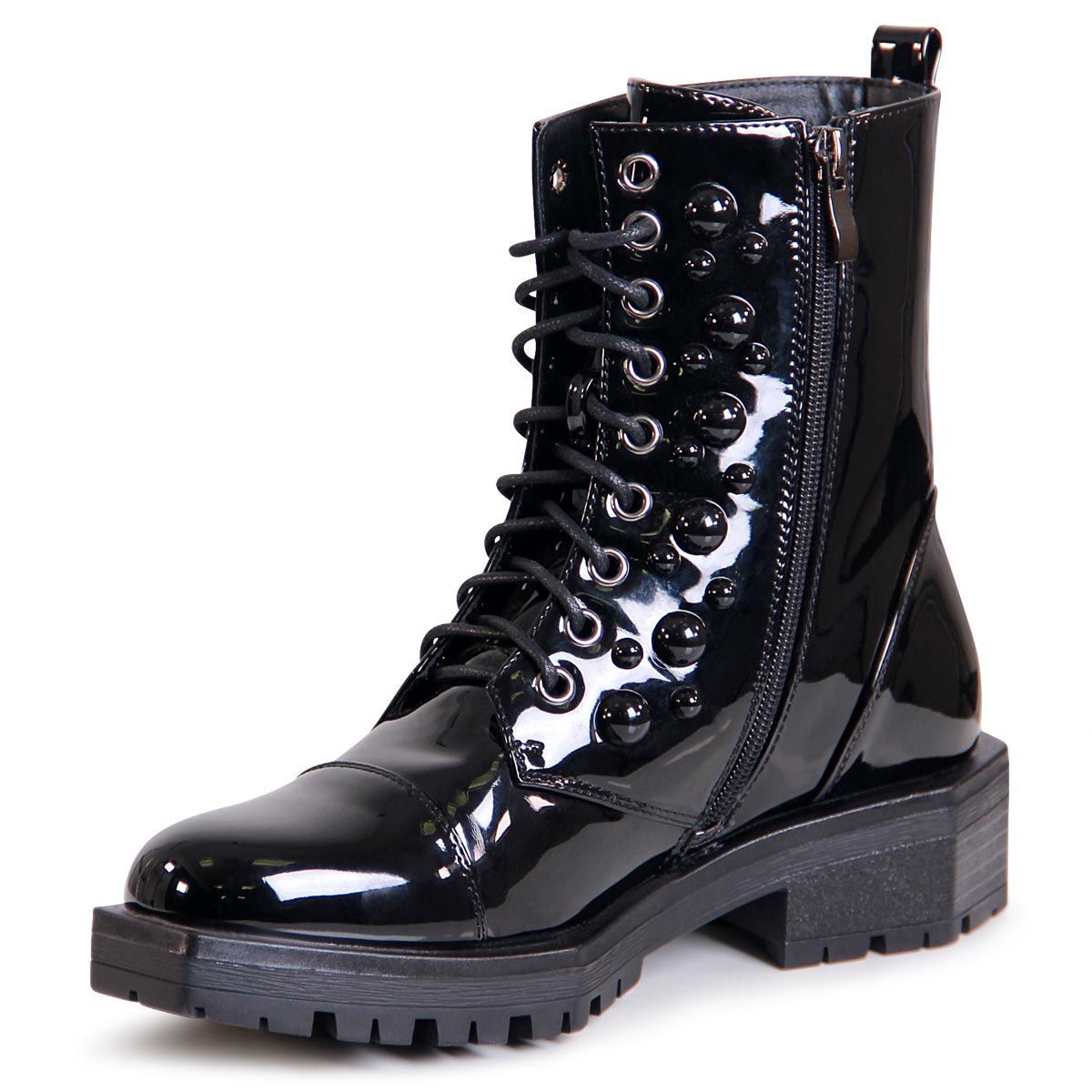 topschuhe24 2245 Damen Lack Stiefeletten Nieten