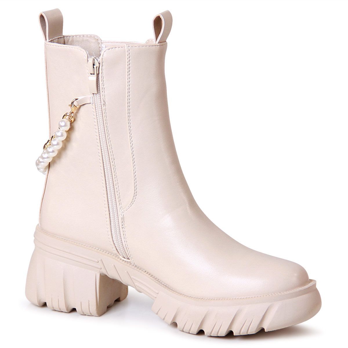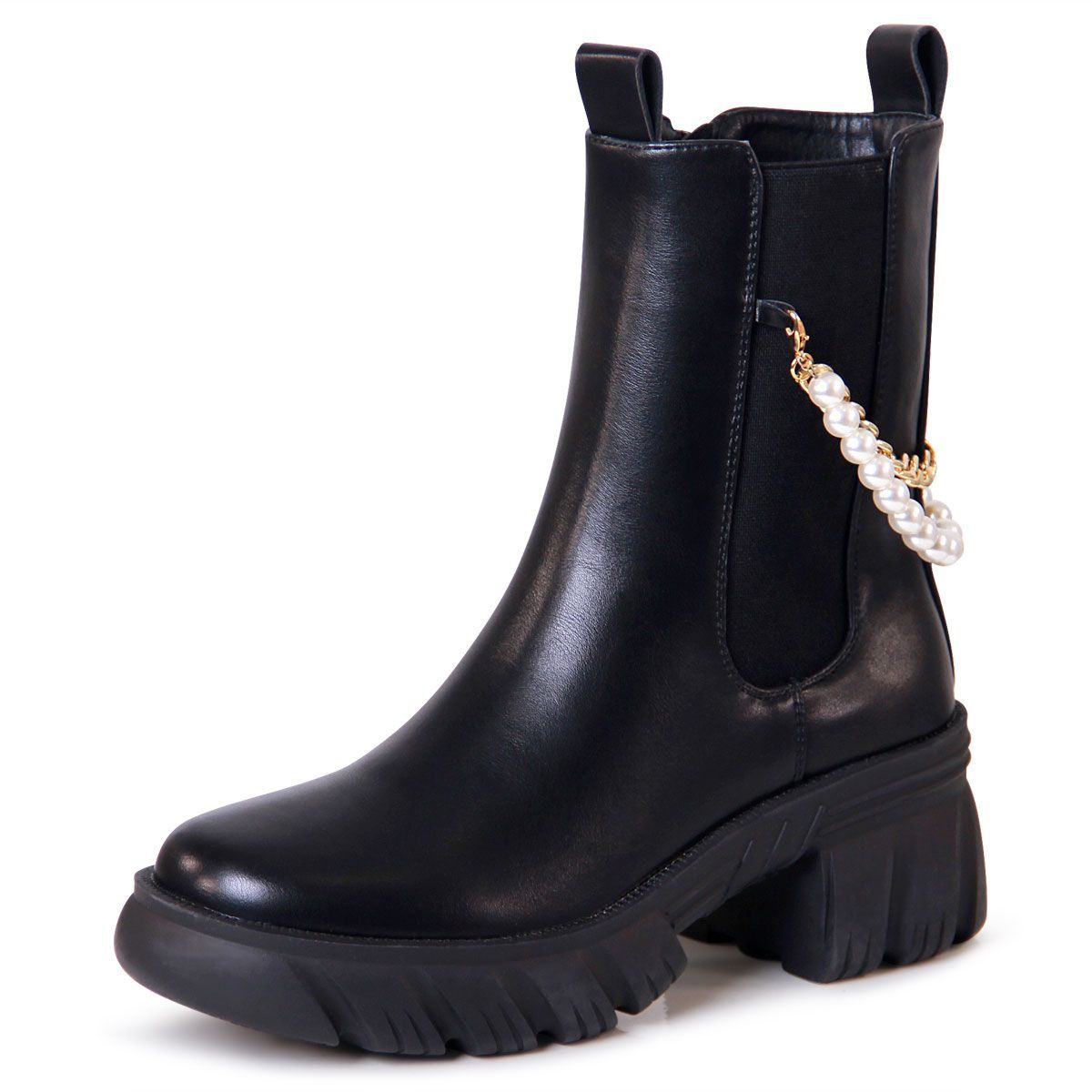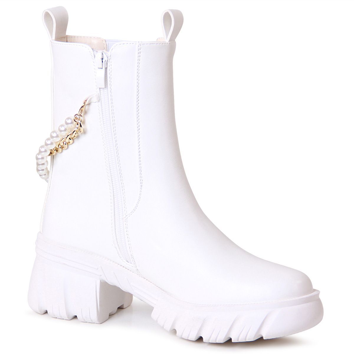 topschuhe24 2324 Damen Plateau Stiefeletten Halb Stiefel Kette