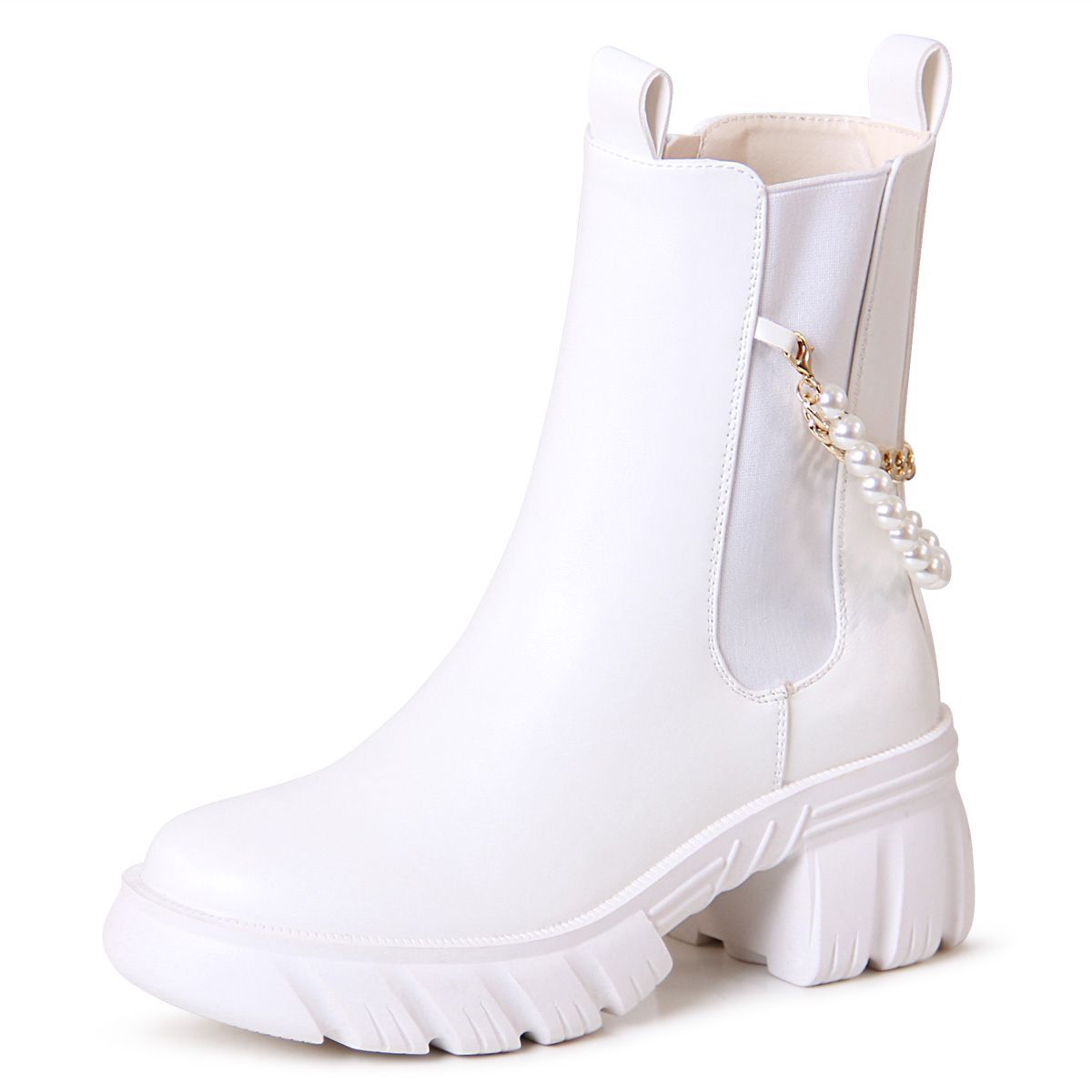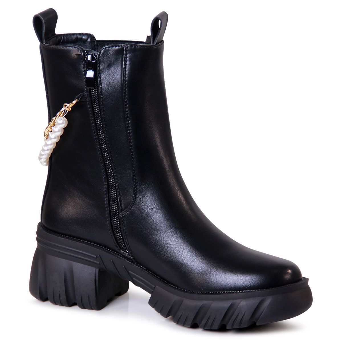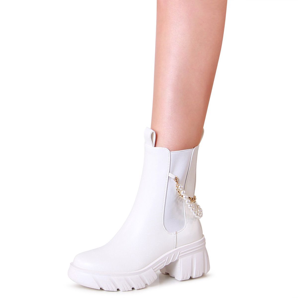 topschuhe24 2324 Damen Plateau Stiefeletten Halb Stiefel Kette