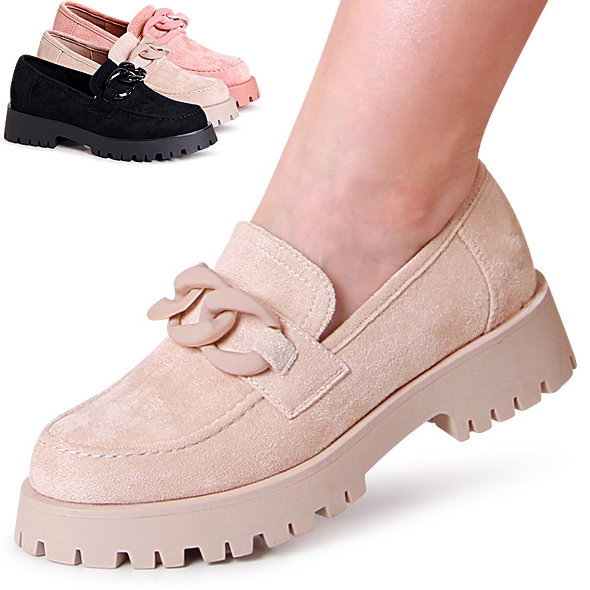 topschuhe24 2326 Damen Velours Halbschuhe Plateau Slipper