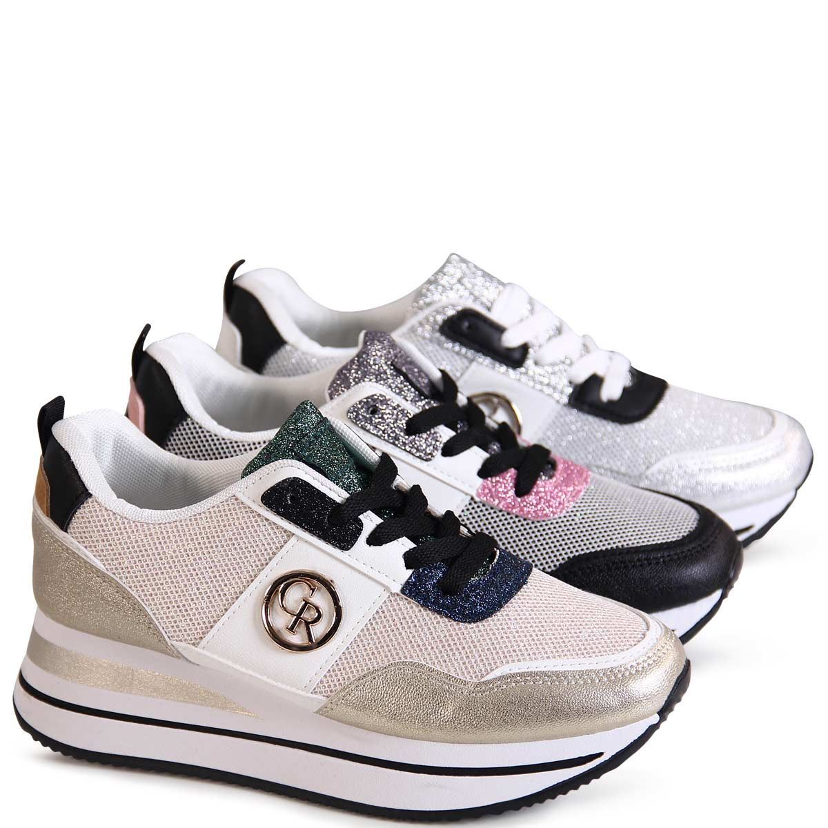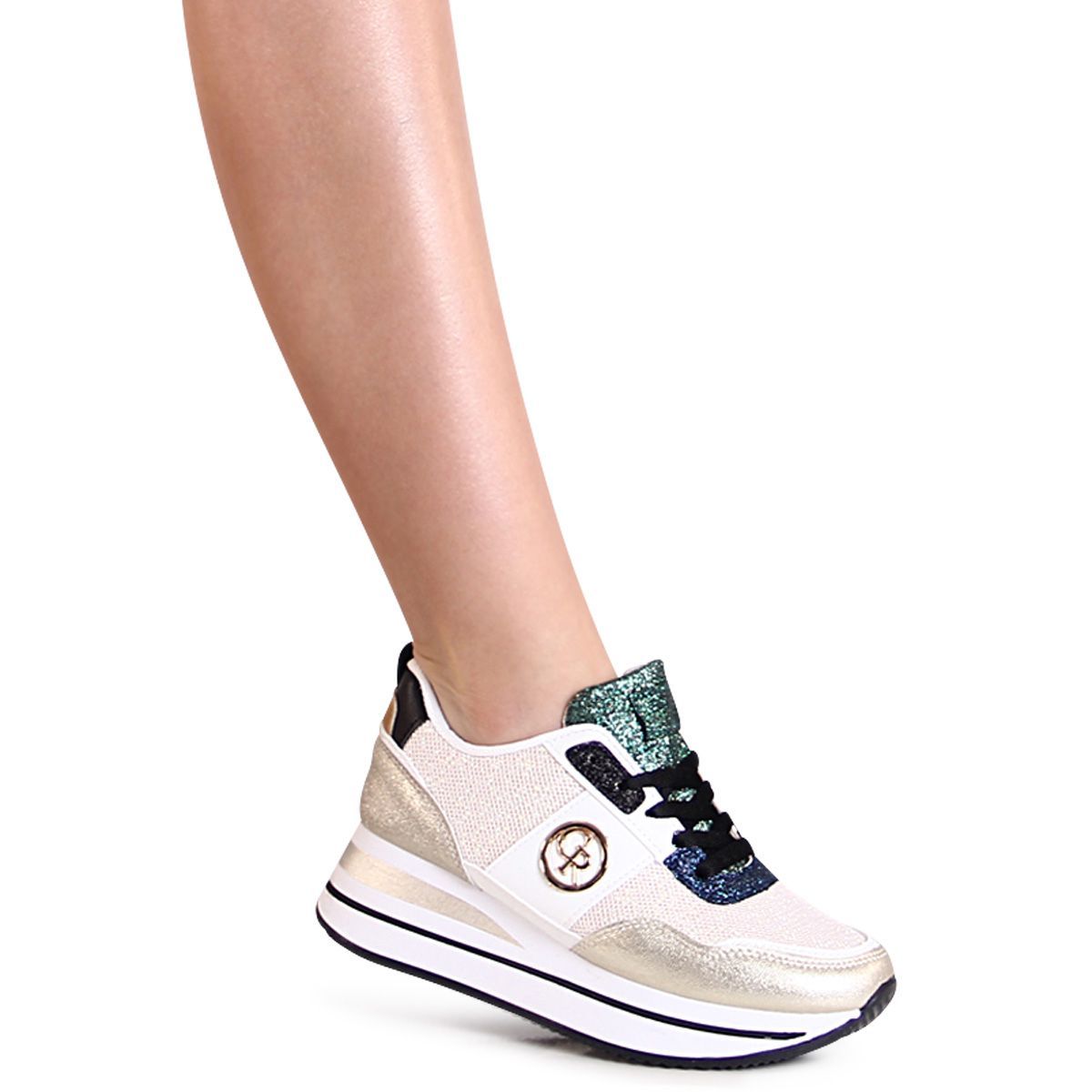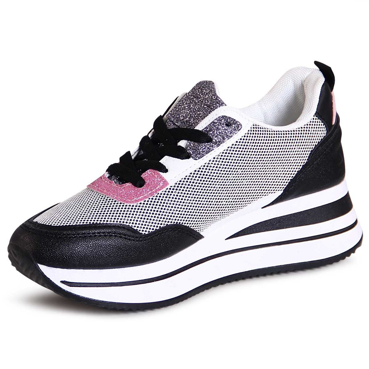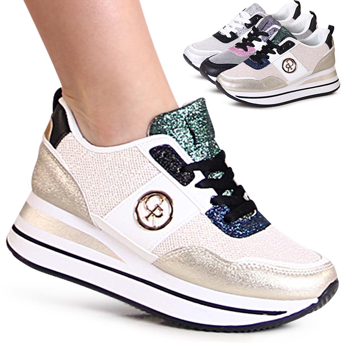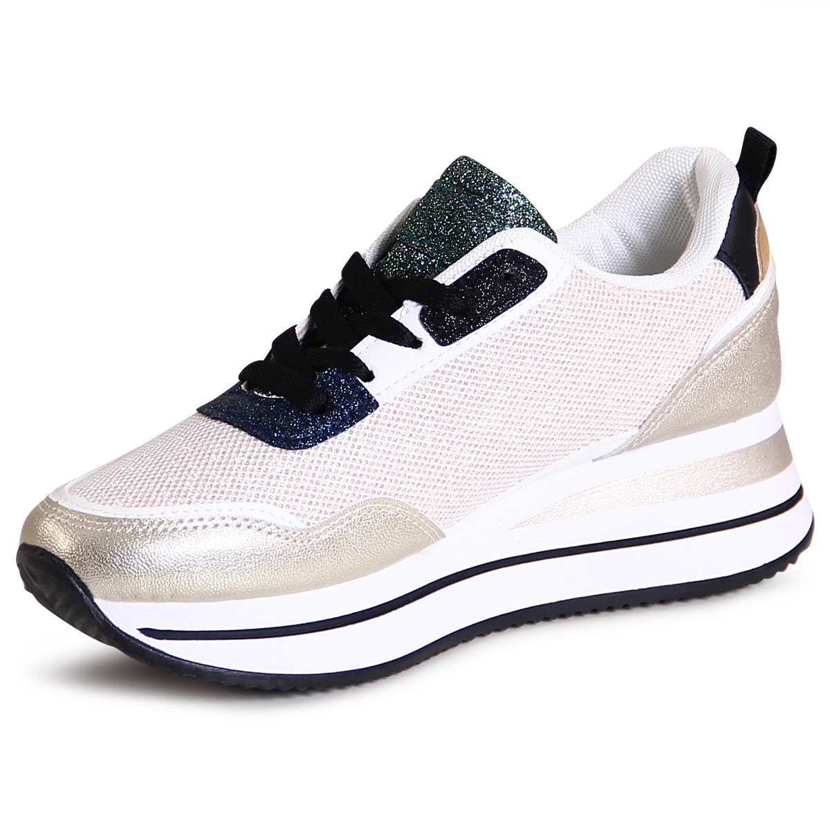 topschuhe24 2667 Damen Keil Sneaker Plateau Halbschuhe Glitzer