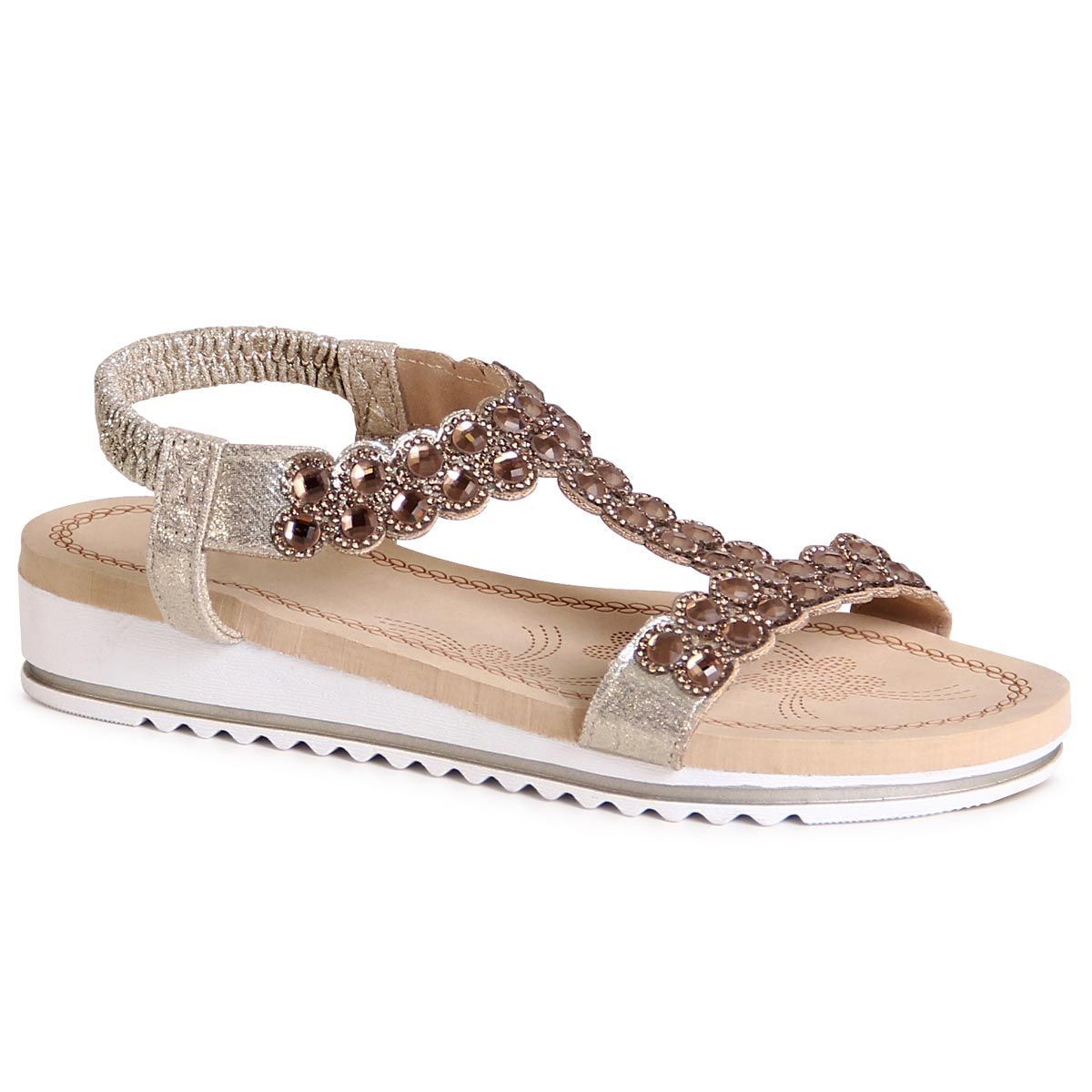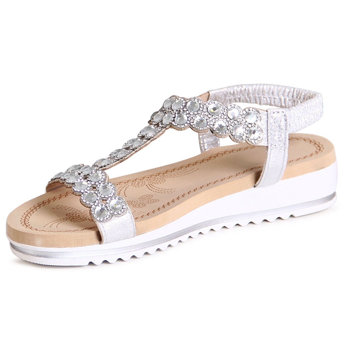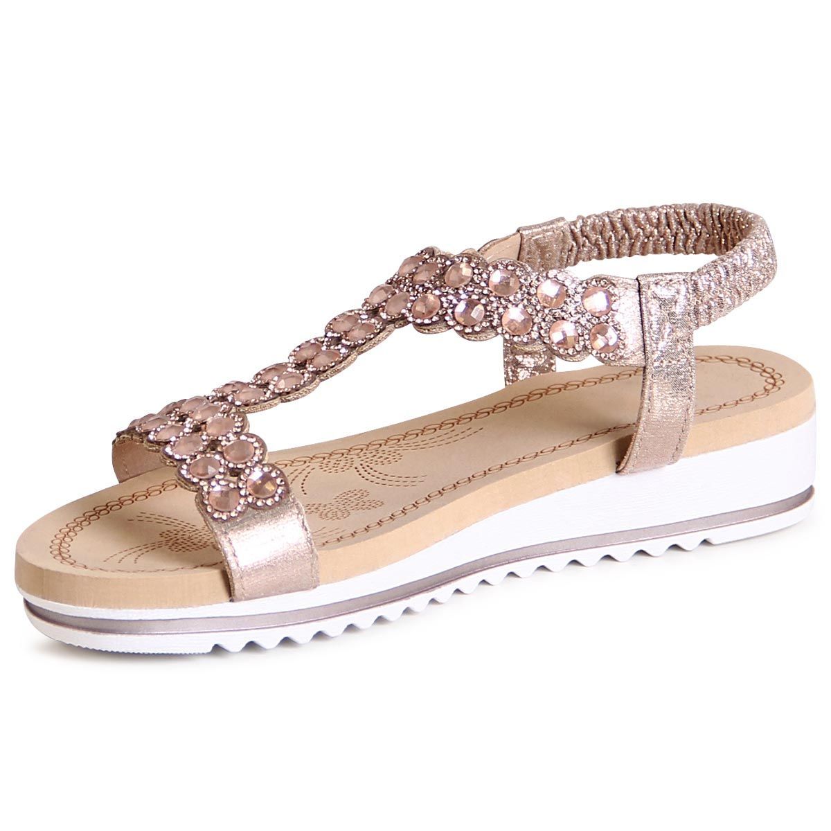topschuhe24 2831 Riemchen Sandalen Glitzer Keilabsatz Sandaletten