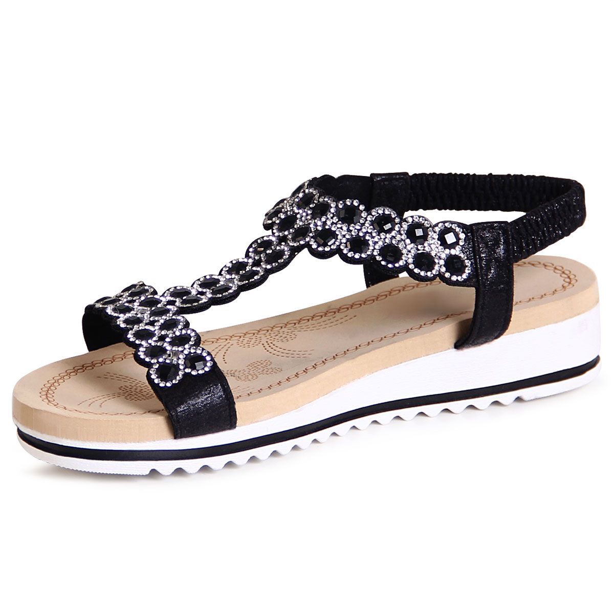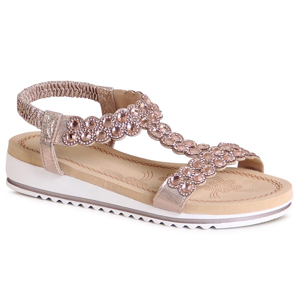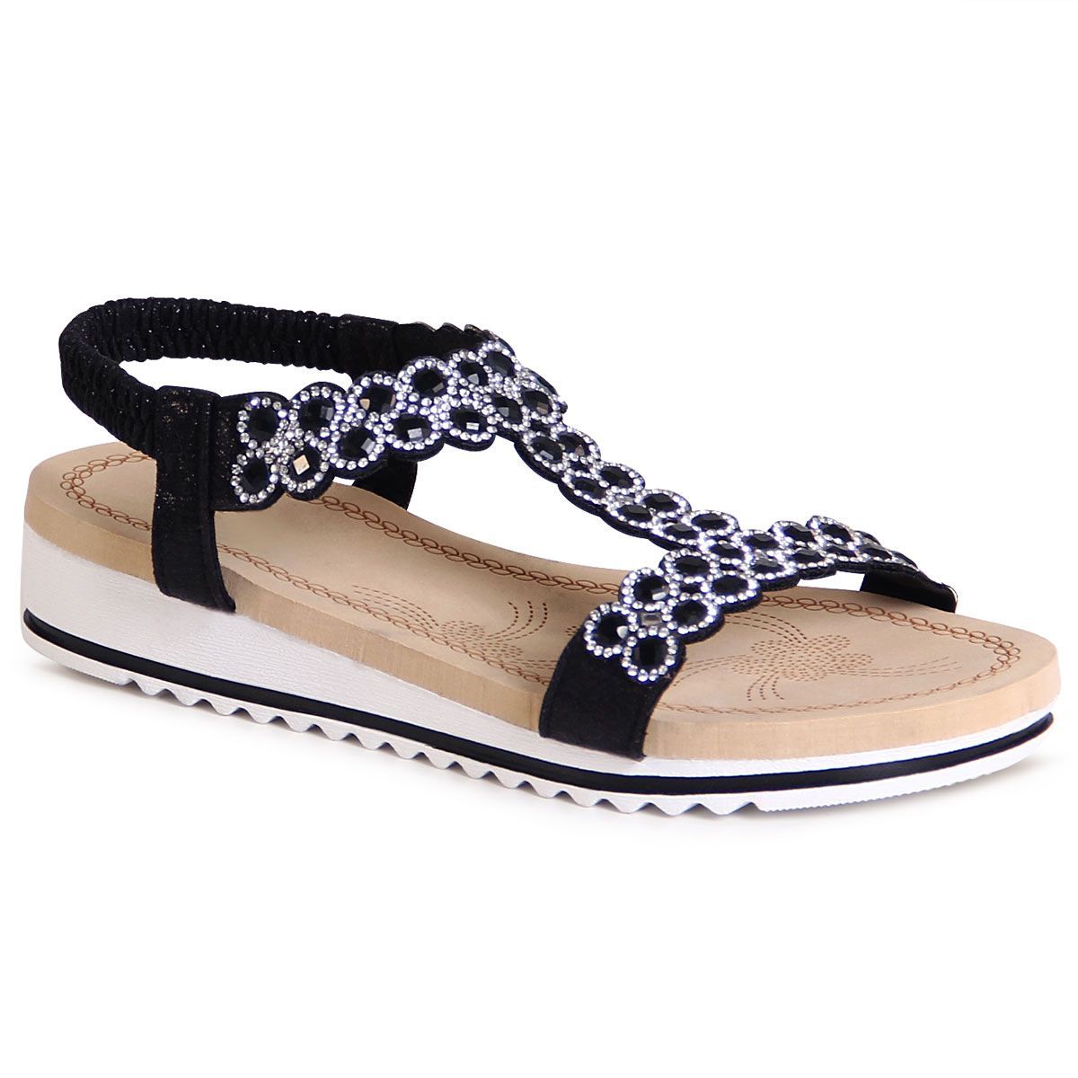 topschuhe24 2831 Riemchen Sandalen Glitzer Keilabsatz Sandaletten