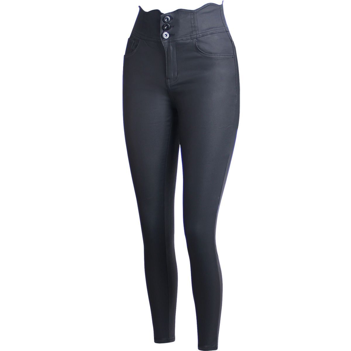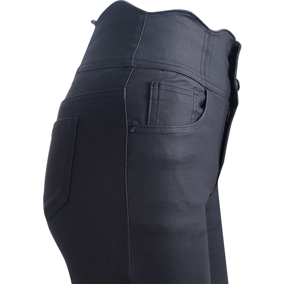 topschuhe24 2853 Damen Skinny Hose Lederoptik High Waist Taille