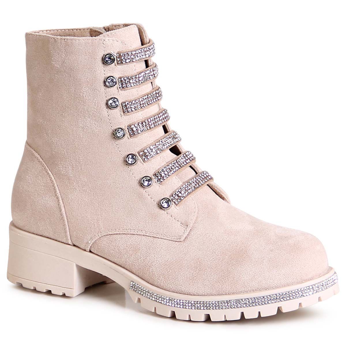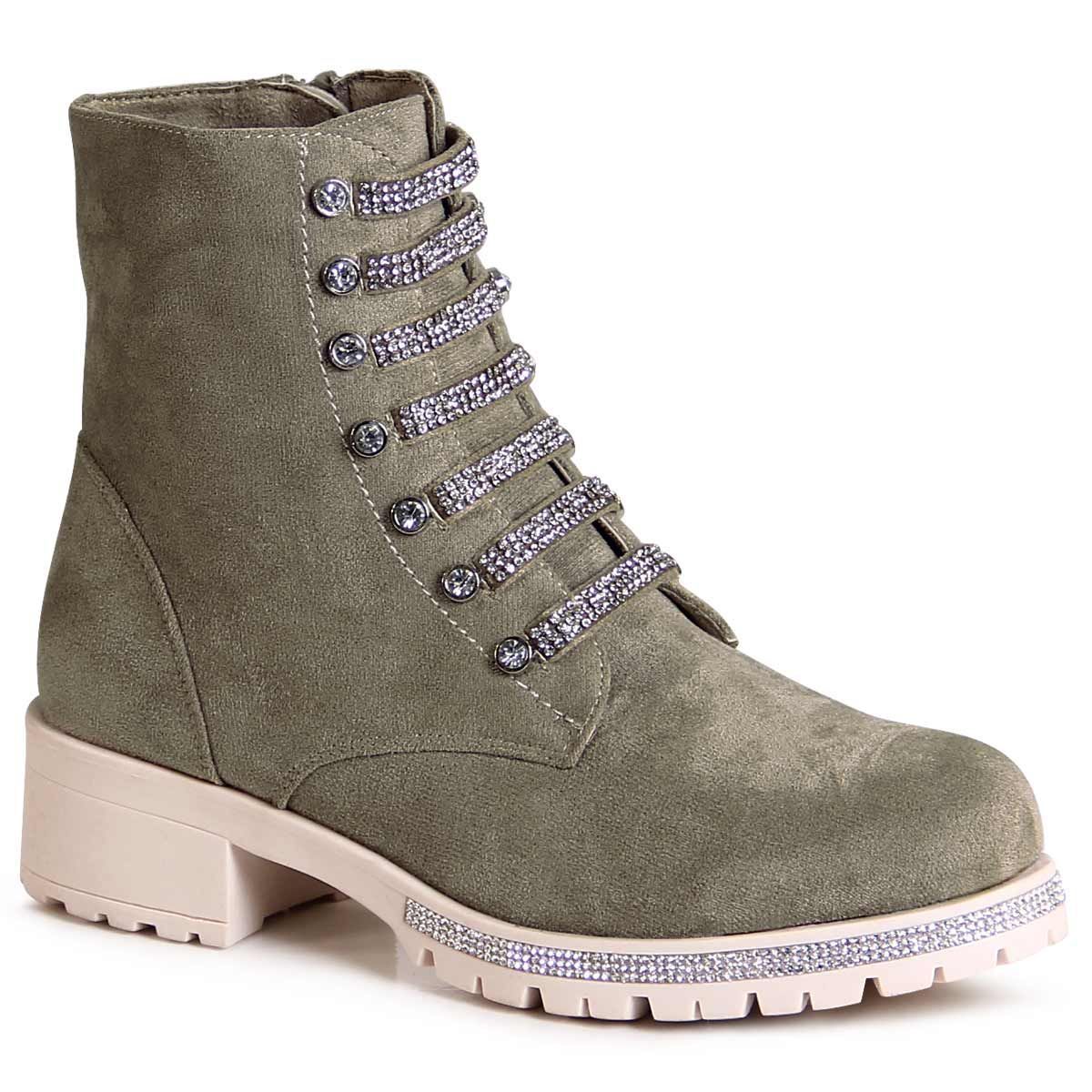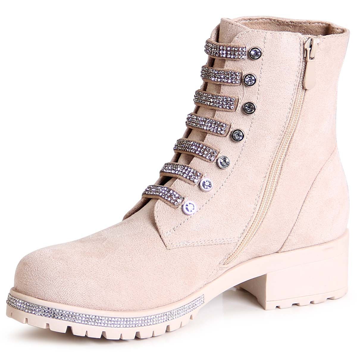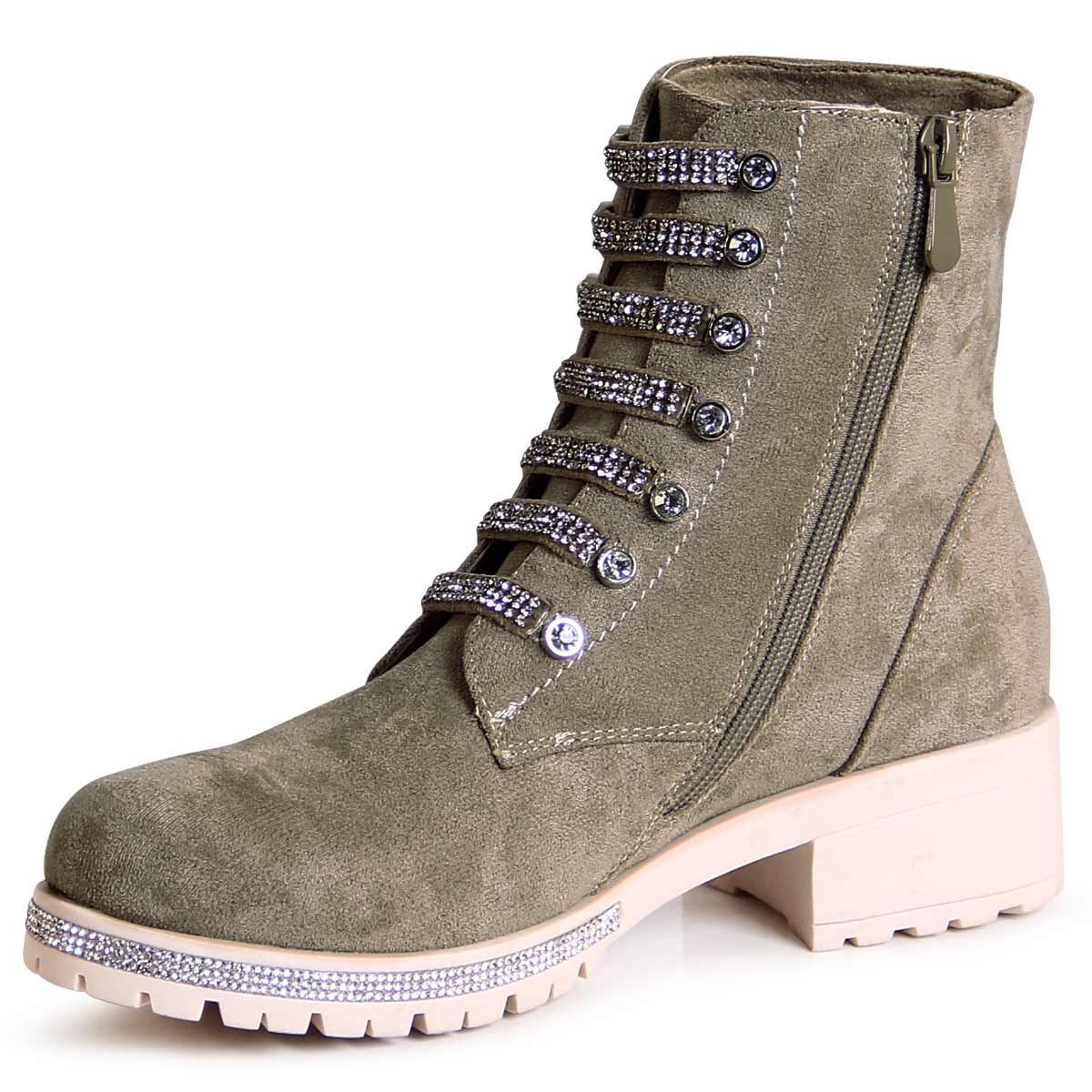 topschuhe24 2860 Damen Velours Stiefeletten Glitzer Worker Biker Boots