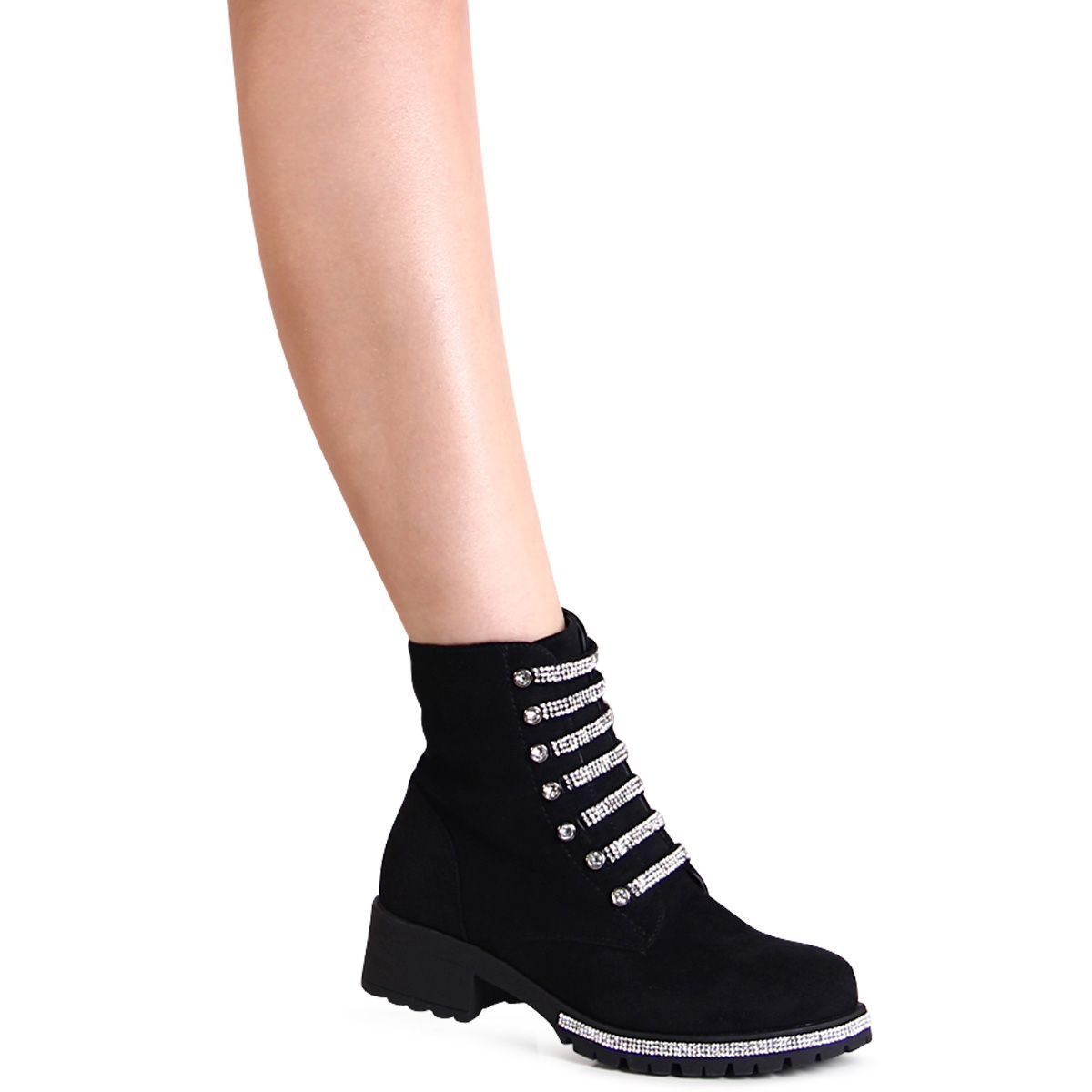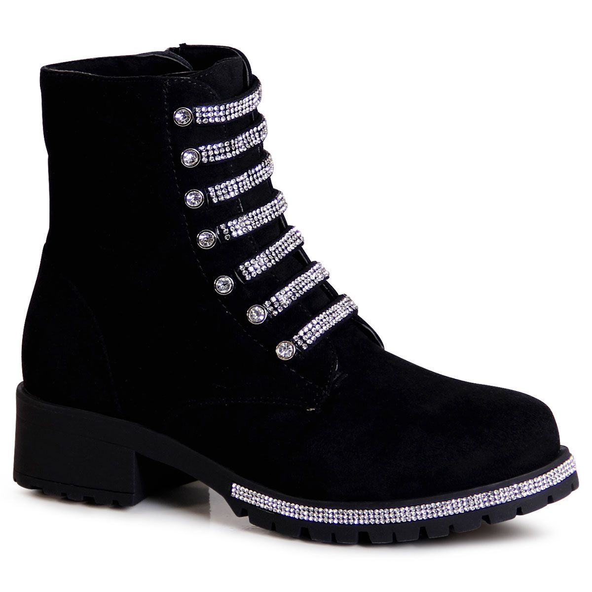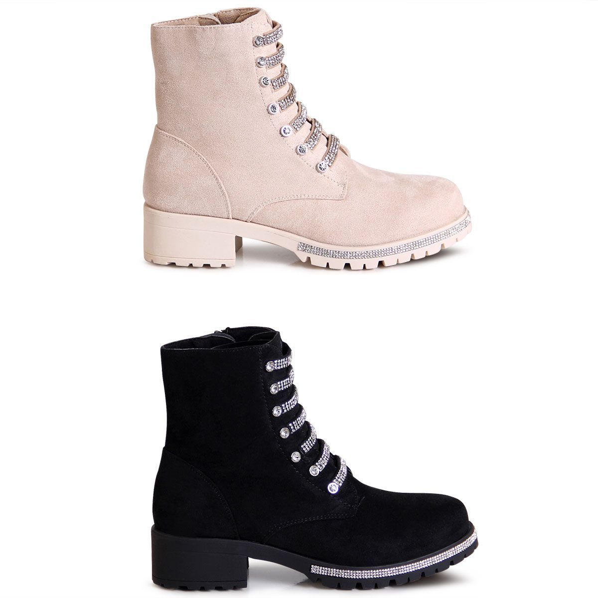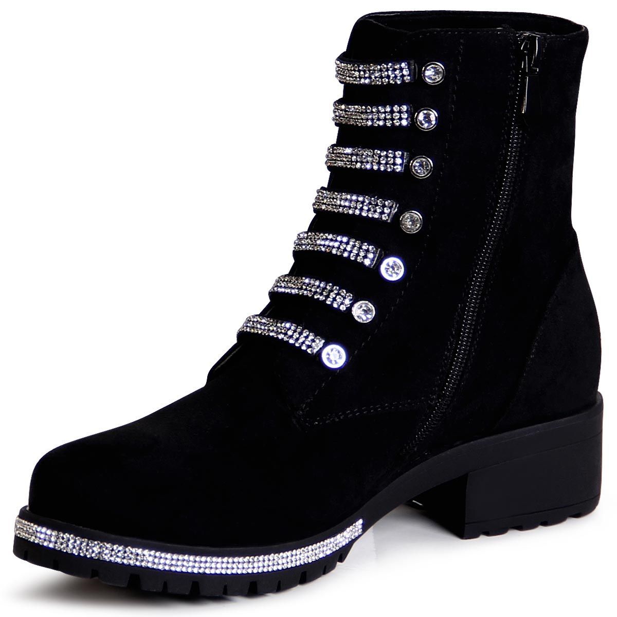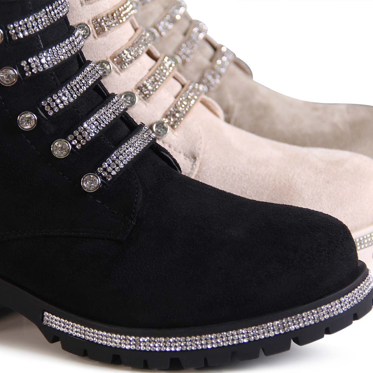 topschuhe24 2860 Damen Velours Stiefeletten Glitzer Worker Biker Boots