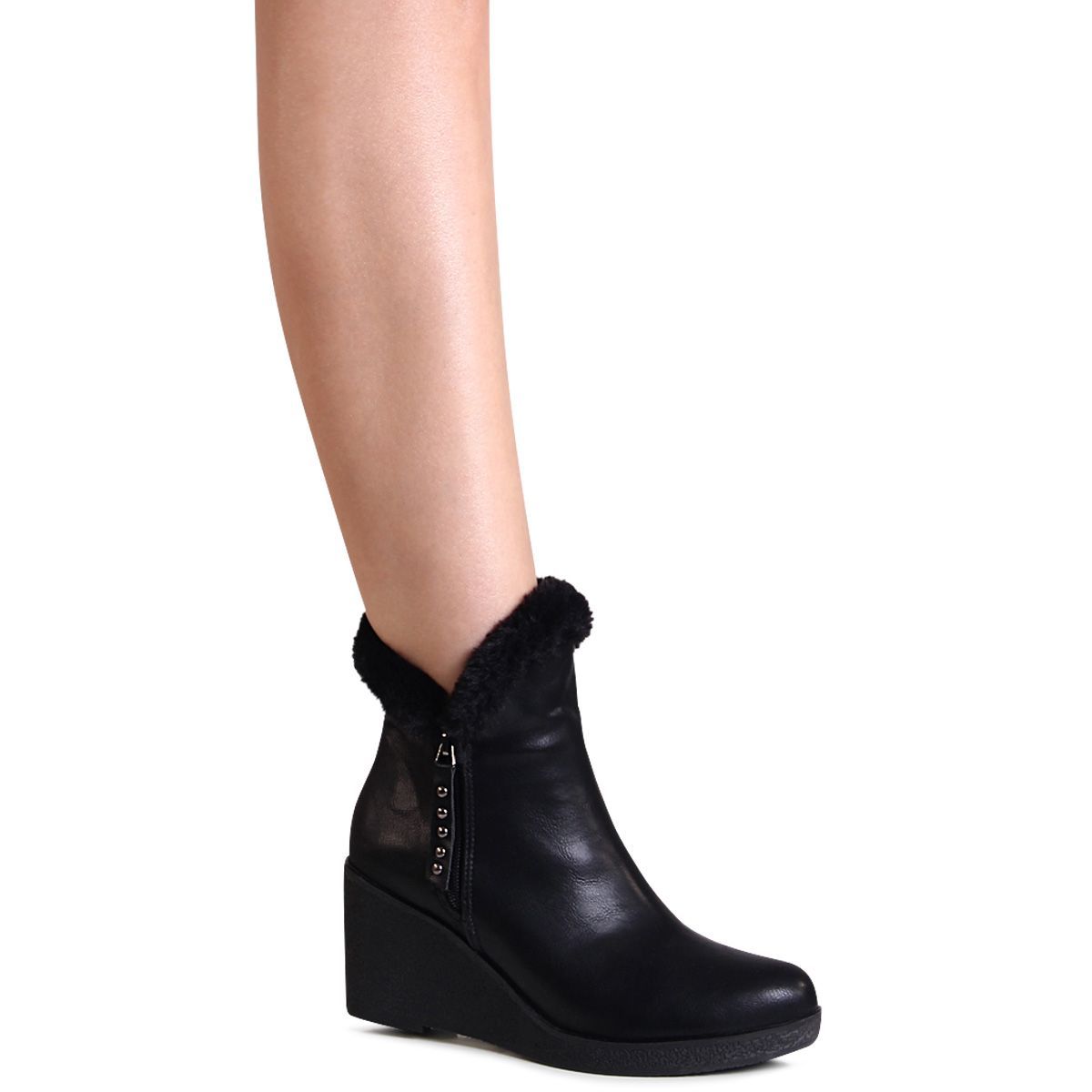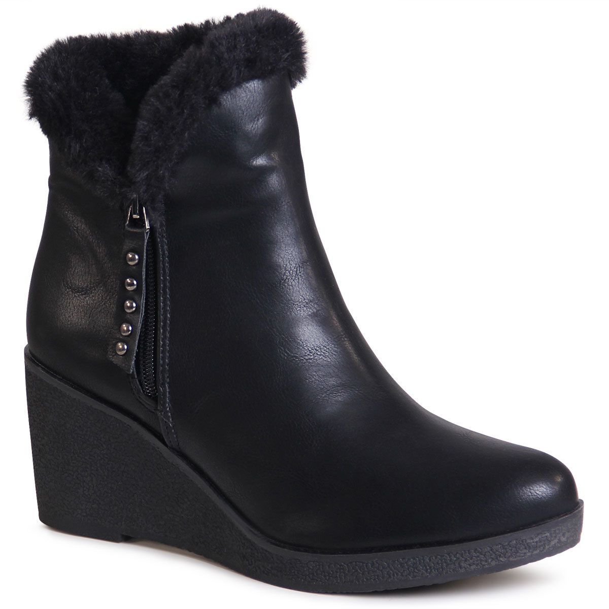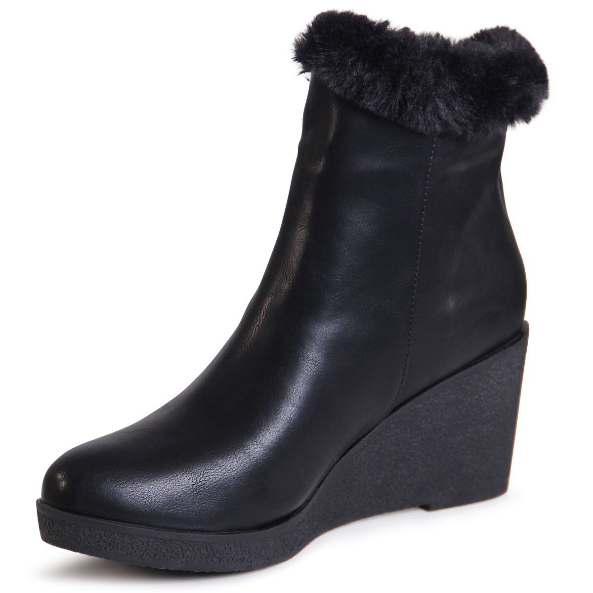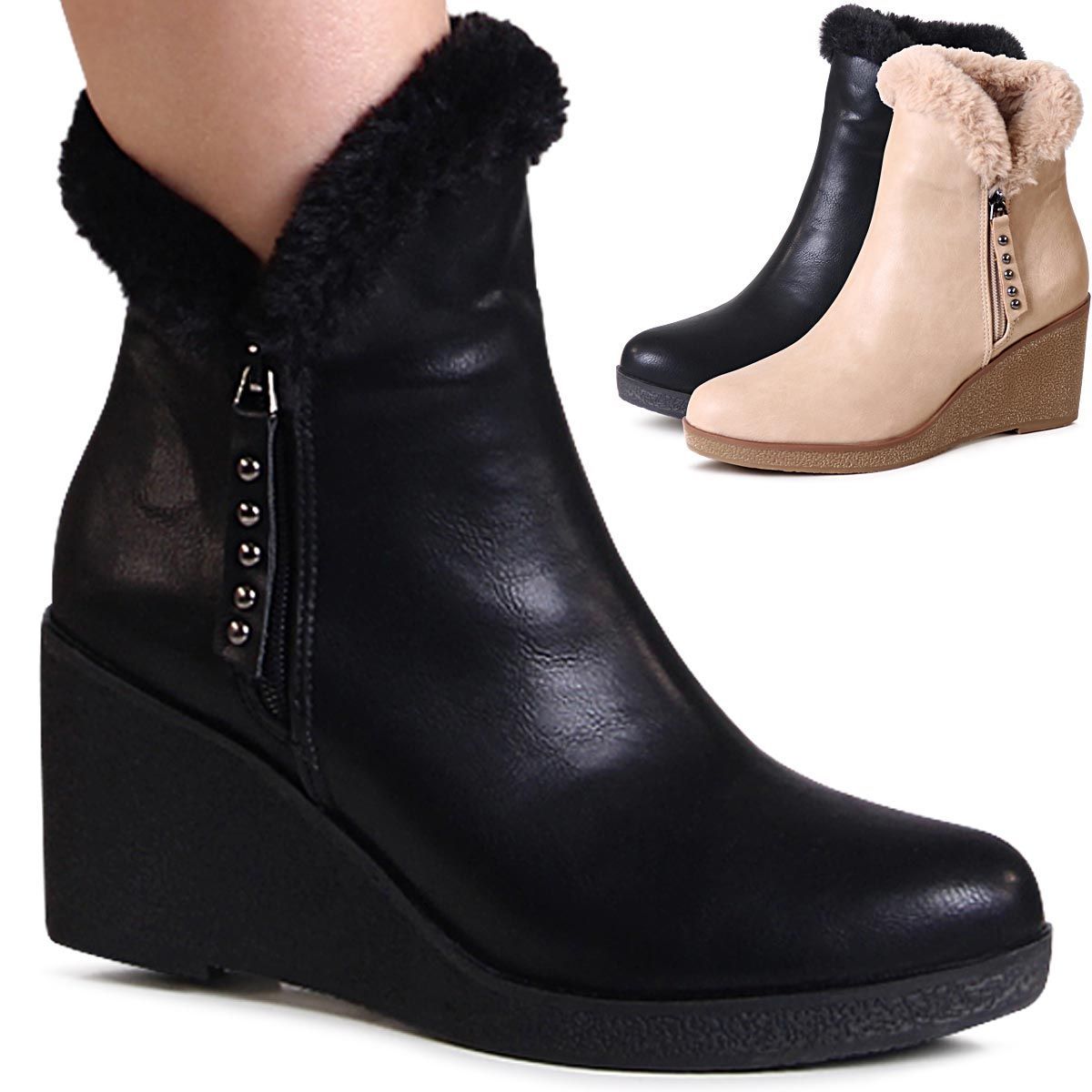 topschuhe24 2949 Damen Keilabsatz Stiefeletten Winter Booties