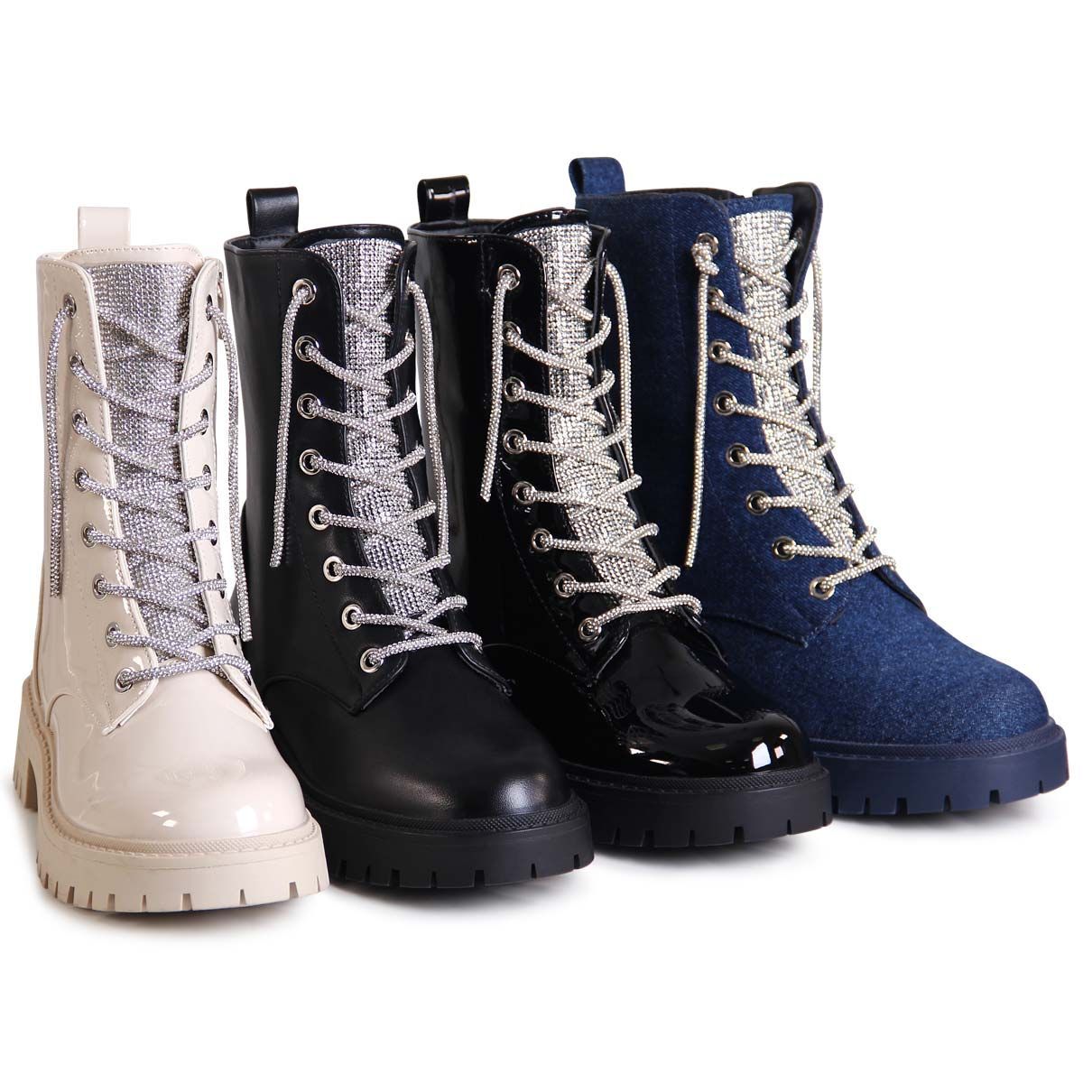 topschuhe24 2959 Damen Plateau Stiefeletten Glitzer Boots
