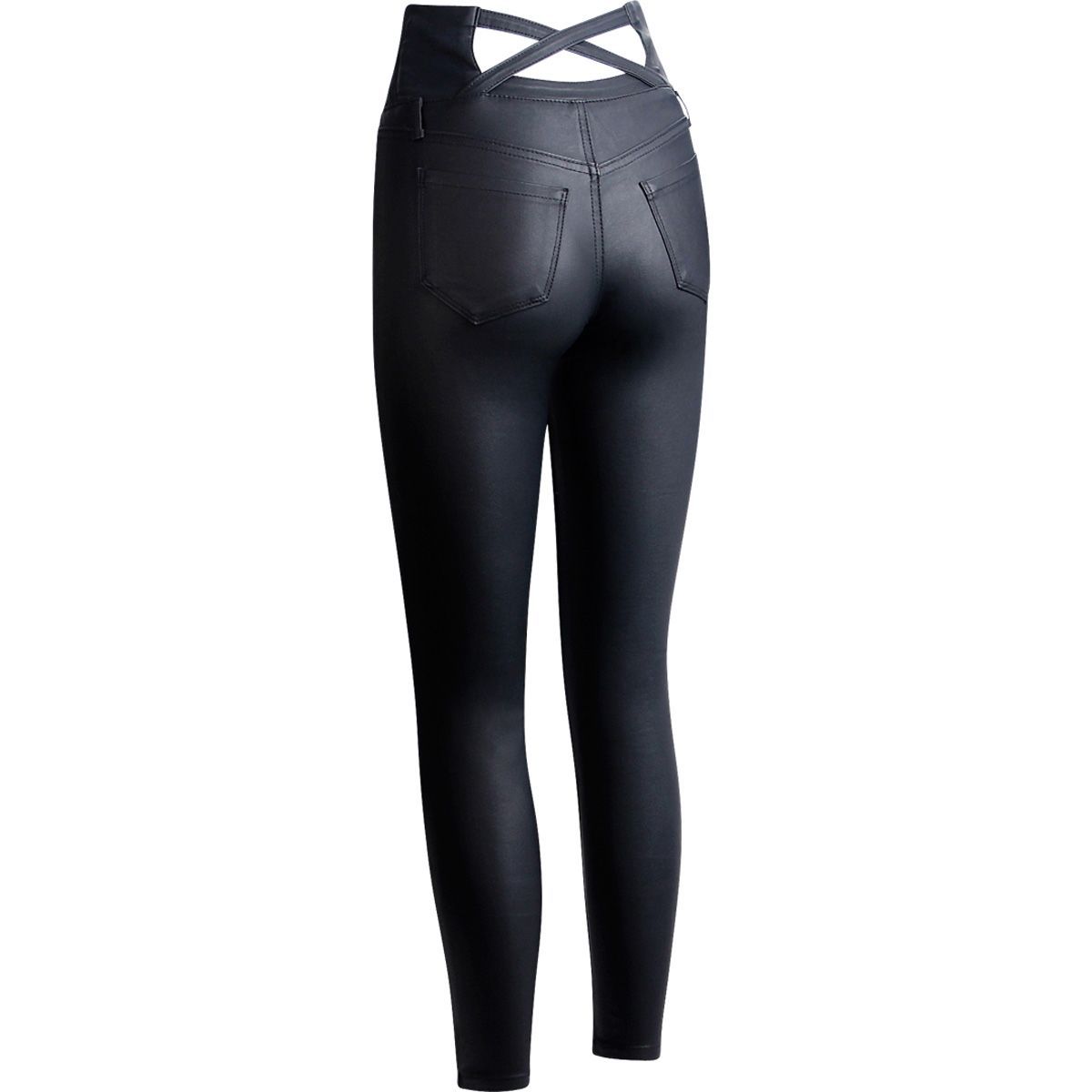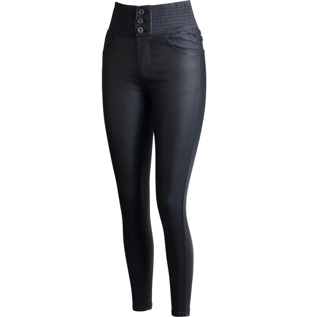 topschuhe24 2991 Damen Skinny Hose Lederoptik High Waist Taille