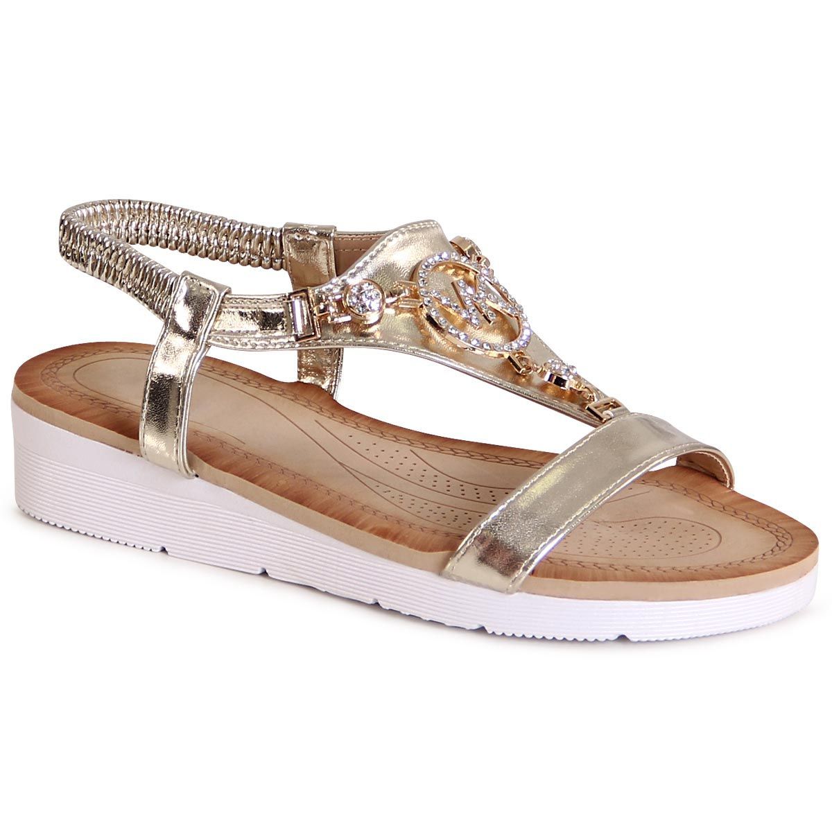 topschuhe24 3003 Damen Riemchen Sandalen Glitzer Sandaletten