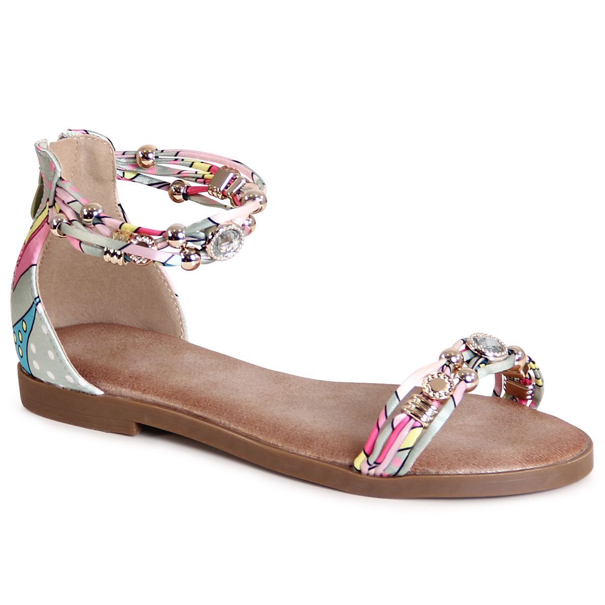 topschuhe24 3072 Damen Riemchen Sandalen Glitzer Sandaletten