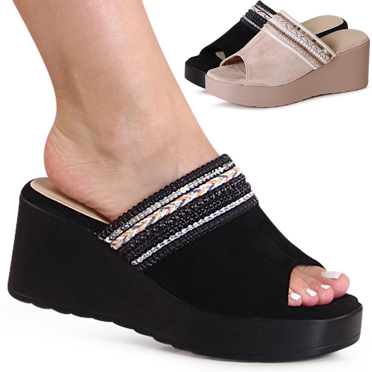 topschuhe24 2955 Damen Keil Halbschuhe Plateau Slipper