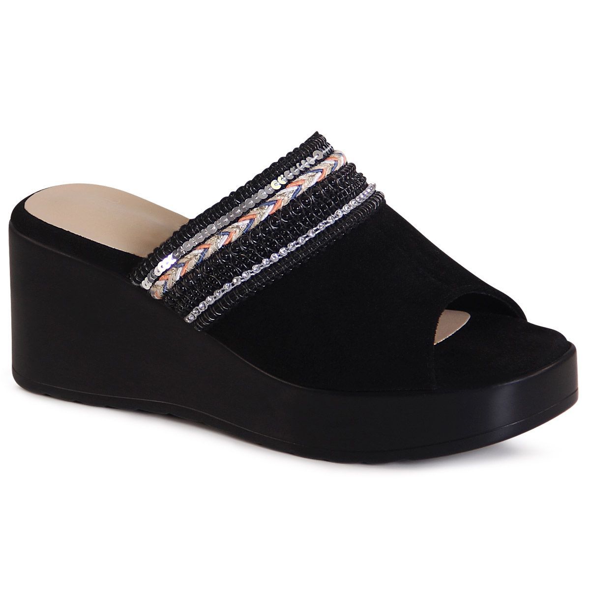 topschuhe24 2965 Damen Plateau Slipper Glitzer Keil Halbschuhe