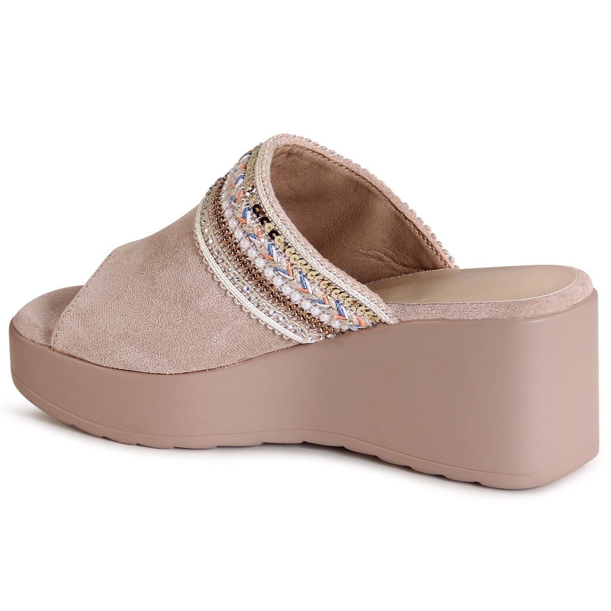 topschuhe24 2967 Damen Plateau Slipper Glitzer Keil Halbschuhe