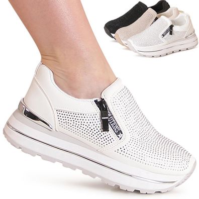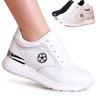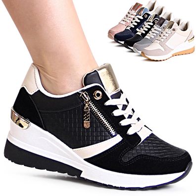 topschuhe24 2614 Damen Keil Sneaker Plateau Halbschuhe