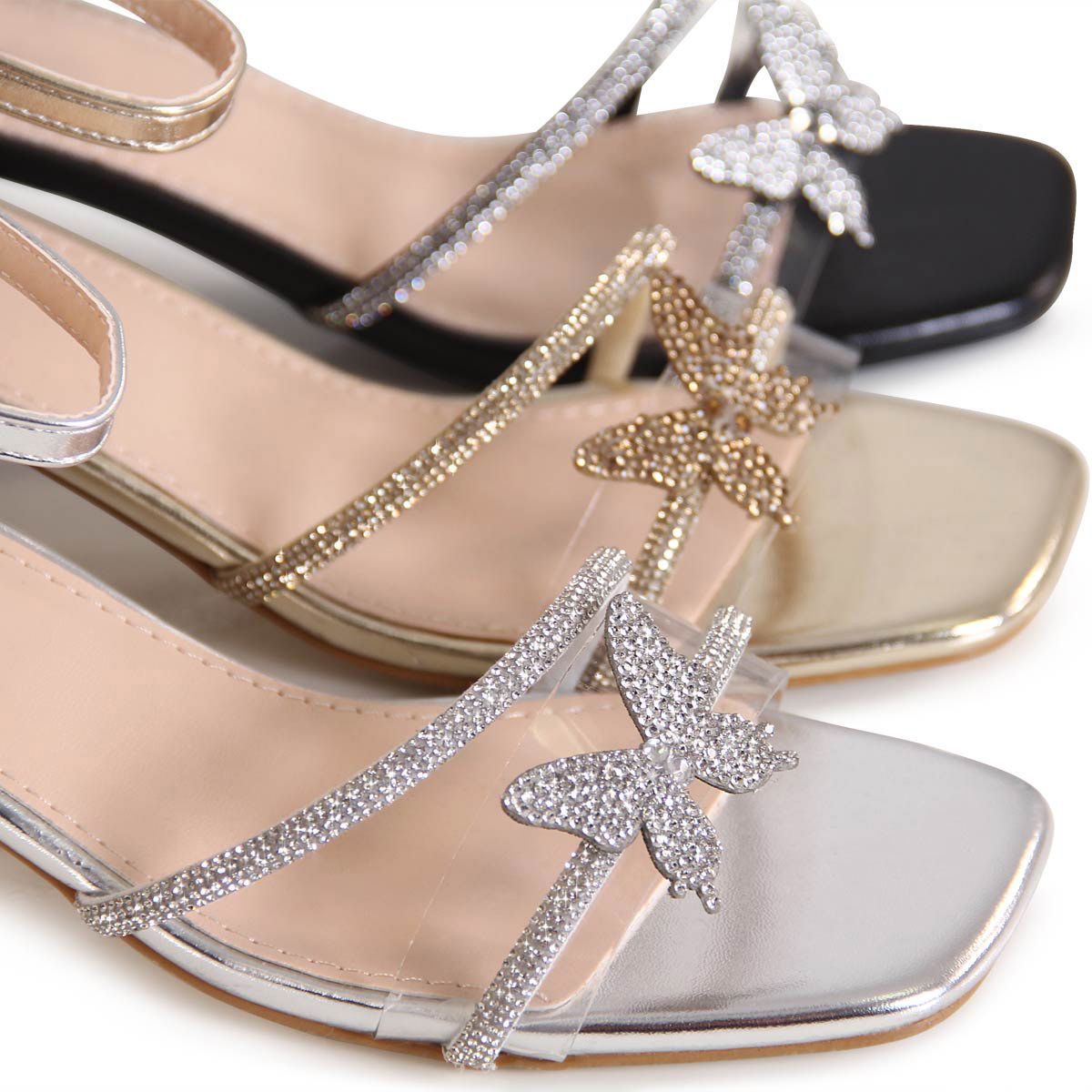 topschuhe24 3180 Damen Glitzer Sandaletten Butterfly