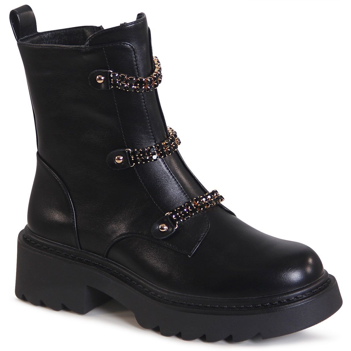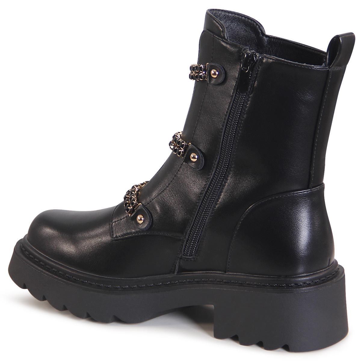 topschuhe24 3192 Damen Plateau Stiefeletten Glitzer Kette