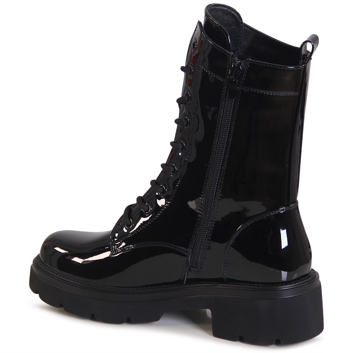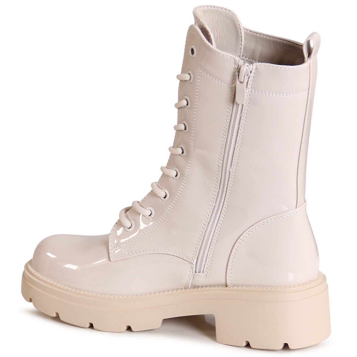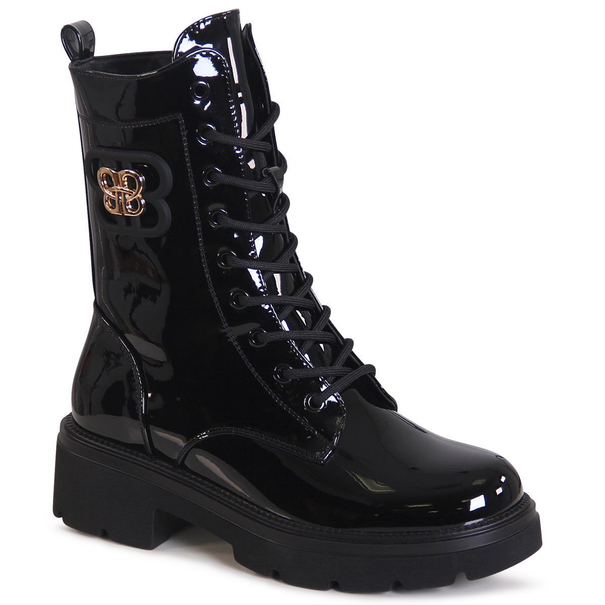 topschuhe24 3194 Damen Lack Stiefeletten Worker Biker Boots