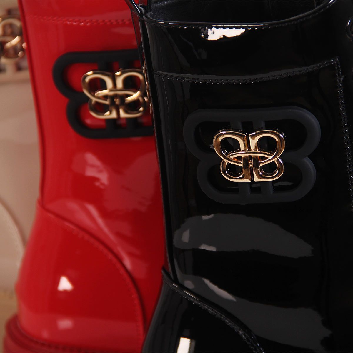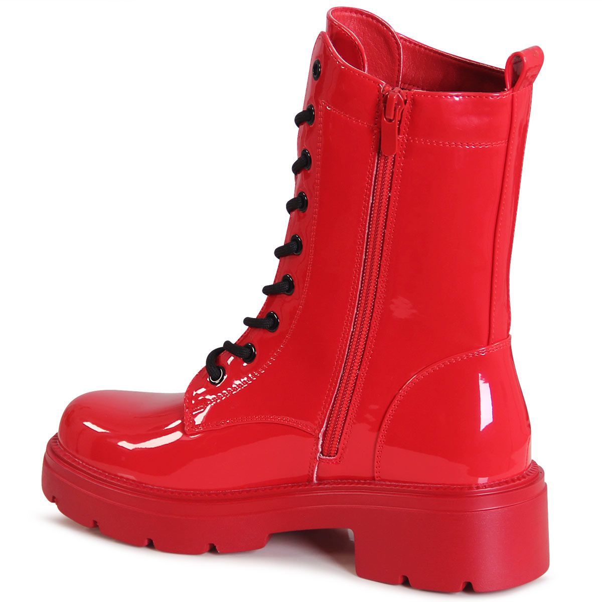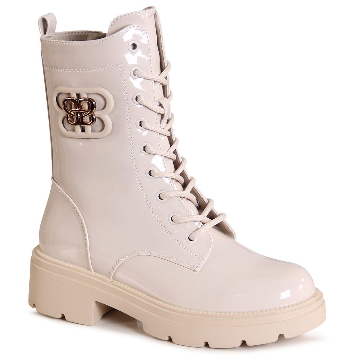 topschuhe24 3194 Damen Lack Stiefeletten Worker Biker Boots