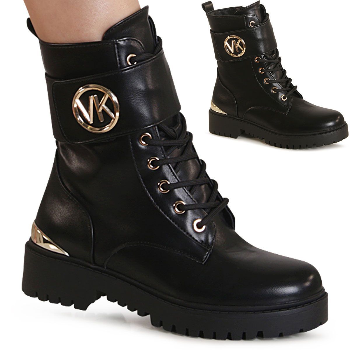 topschuhe24 3202 Damen Plateau Stiefeletten Worker Biker Boots