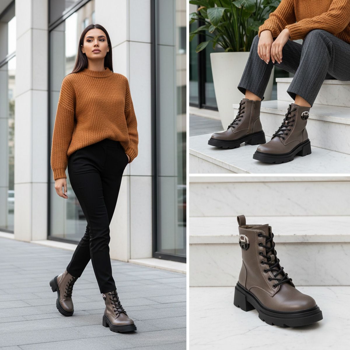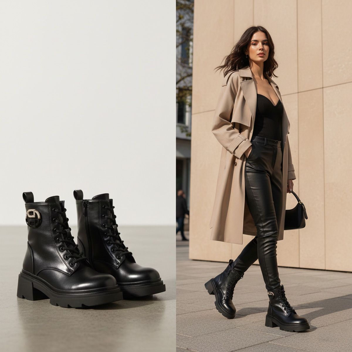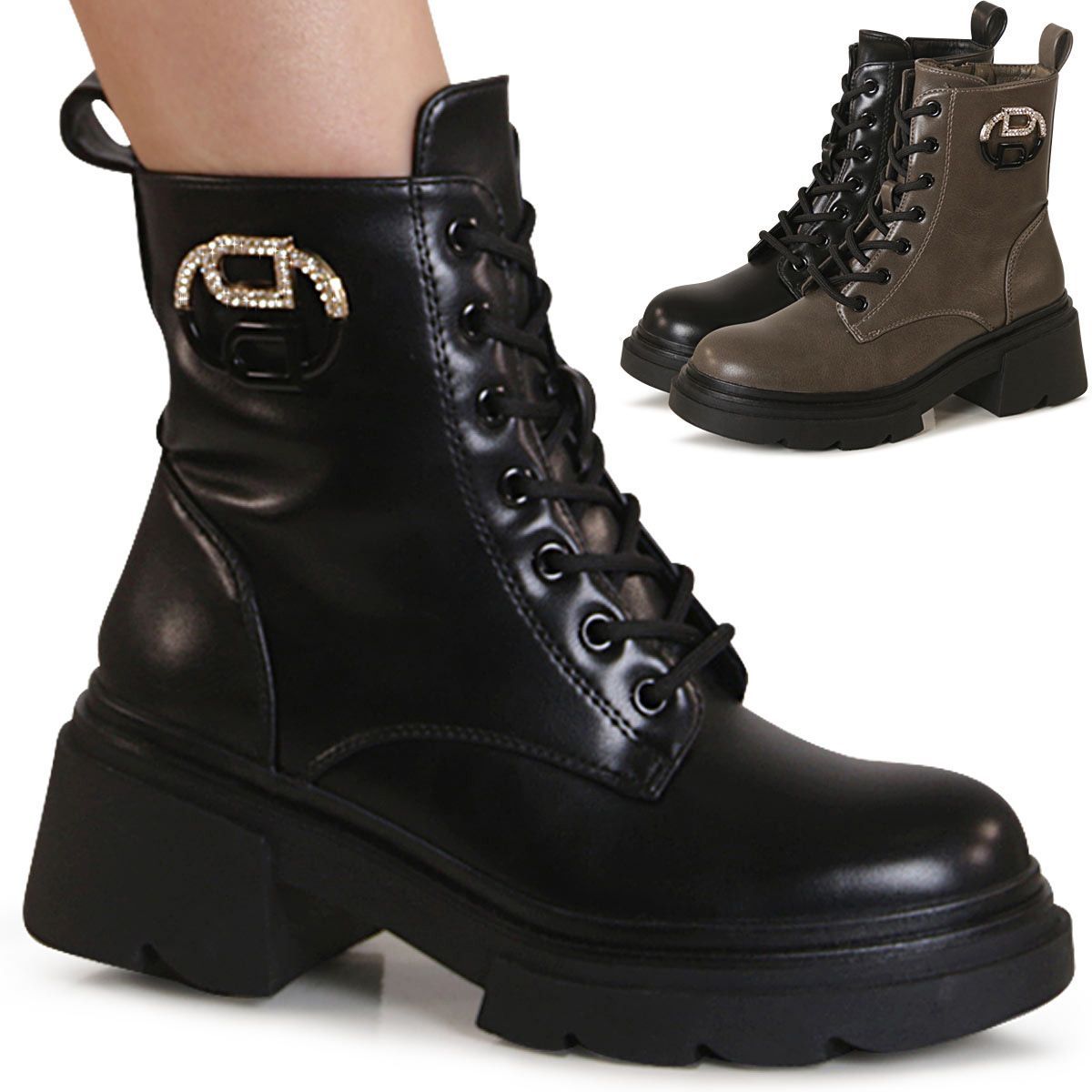 topschuhe24 3212 Damen Plateau Stiefeletten Worker Biker Boots Glitzer