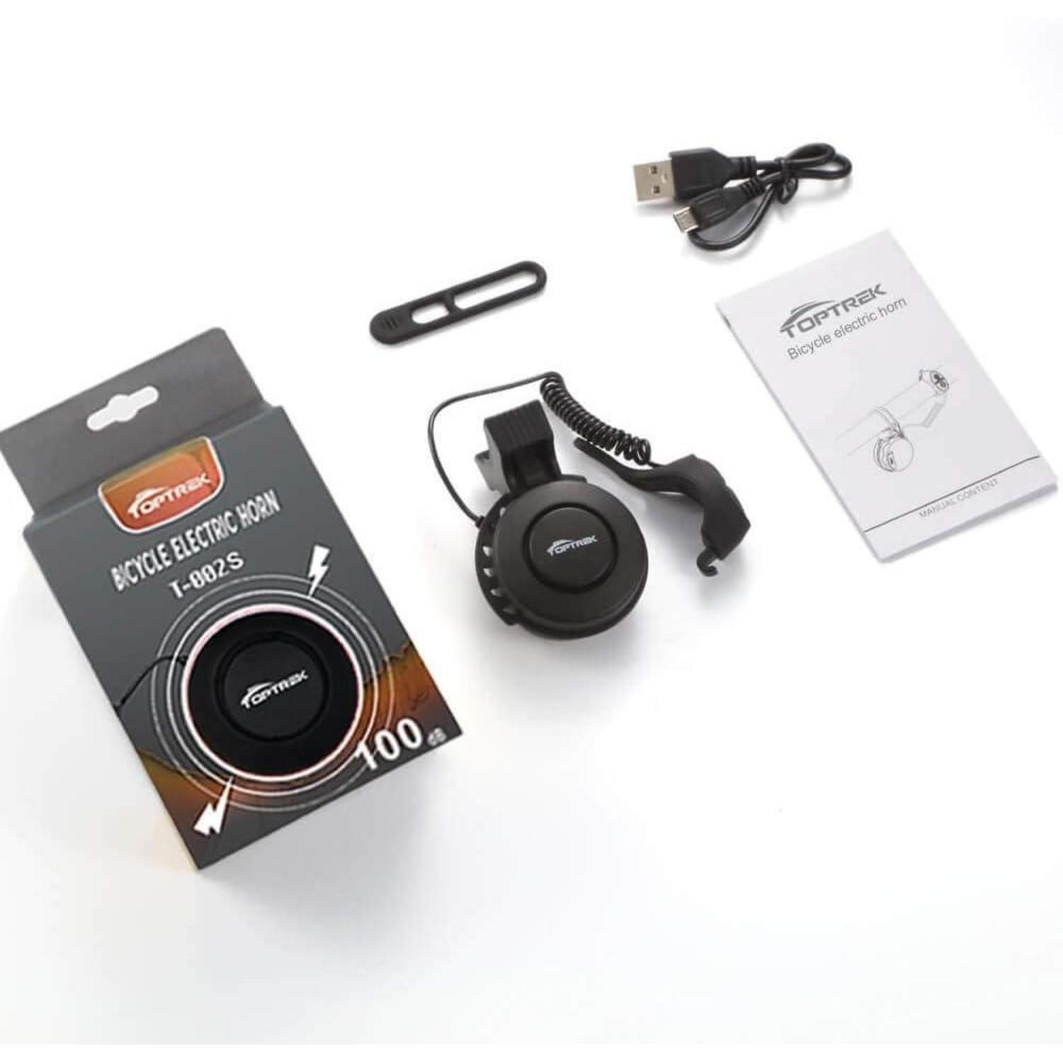 Toptrek Elektrische Fahrradklingel USB Wiederaufladbar 100db IP65 Schwarz