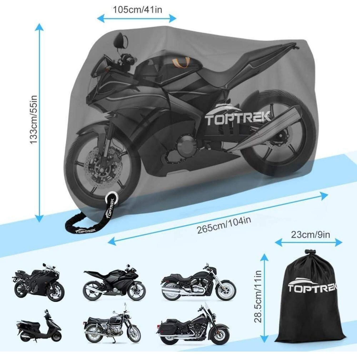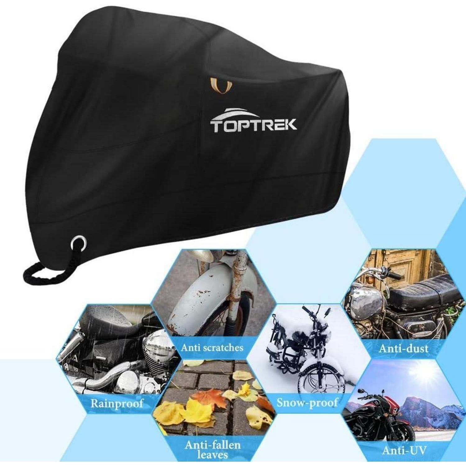 Toptrek XXXL Motorradabdeckung 210D Oxford Stoff Wasserdicht Schwarz