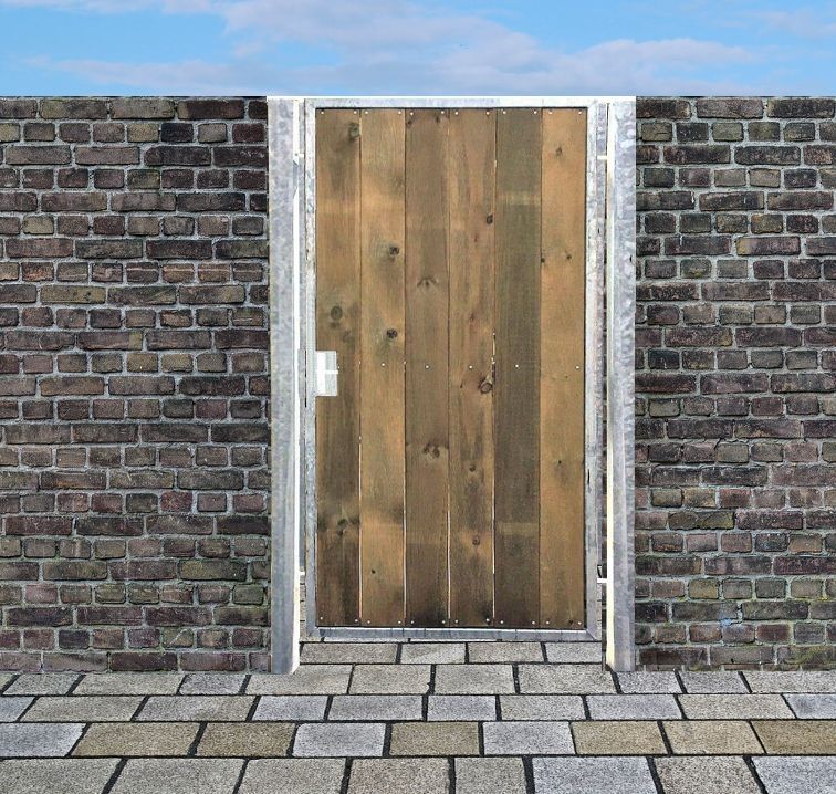 Tor Holztor Gartentor Hoftor Verzinkt mit Pfosten & Holzfüllung S HxB 160x125cm