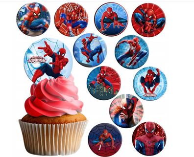 Spiderman Essbar Spinne 12 Muffin Zuckermasse Tortenbild Tortenaufleger s01