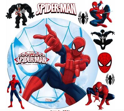 Spiderman Essbar Held Spinne Zuckermasse Tortenbild Tortenaufleger + 4 Muffin