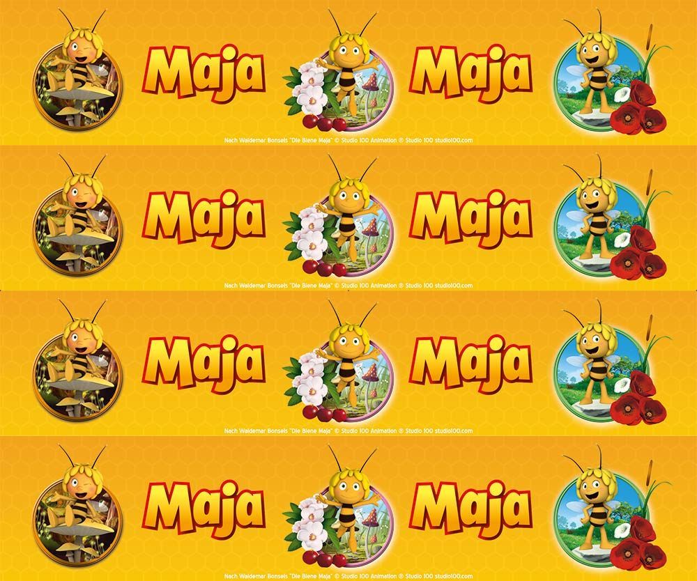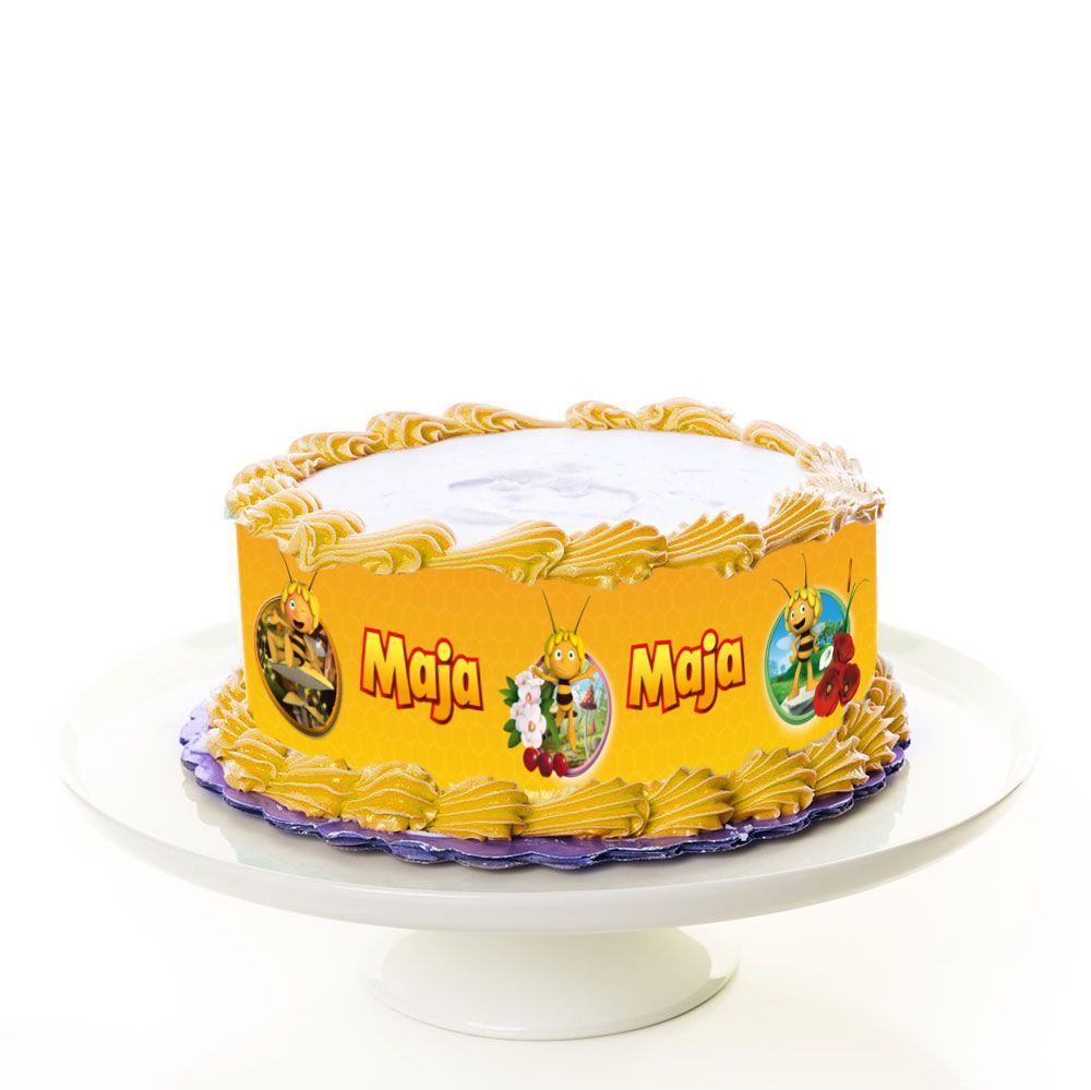 Tortenband Biene Maja Liebt Dich essbar - 4 Stück á 24cm x 5cm Gestalten Sie zum Kindergeburtstag eine tolle Torte im Biene Maja Design. Tortenaufleger und Tortenbänder mit Biene Maja Designs sind exklusiv bei uns erhältlich. Verzieren Sie Ihre Torten mit unseren essbaren und flexiblen Tortenbändern