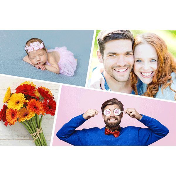 Tortenbild Collage in Rechteckig mit verschiedenen 4 Bildern Sie bekommen Ihr individuelles und essbares Tortenbild mit verschiedenen Bildern in optimaler Qualität auf Dekor-Plus Zuckerpapier gedruckt. Ihrer perfekten Fototorte steht damit nichts mehr im Wege. Der Tortenaufleger wird verarbeitungsfe