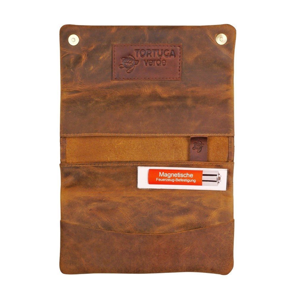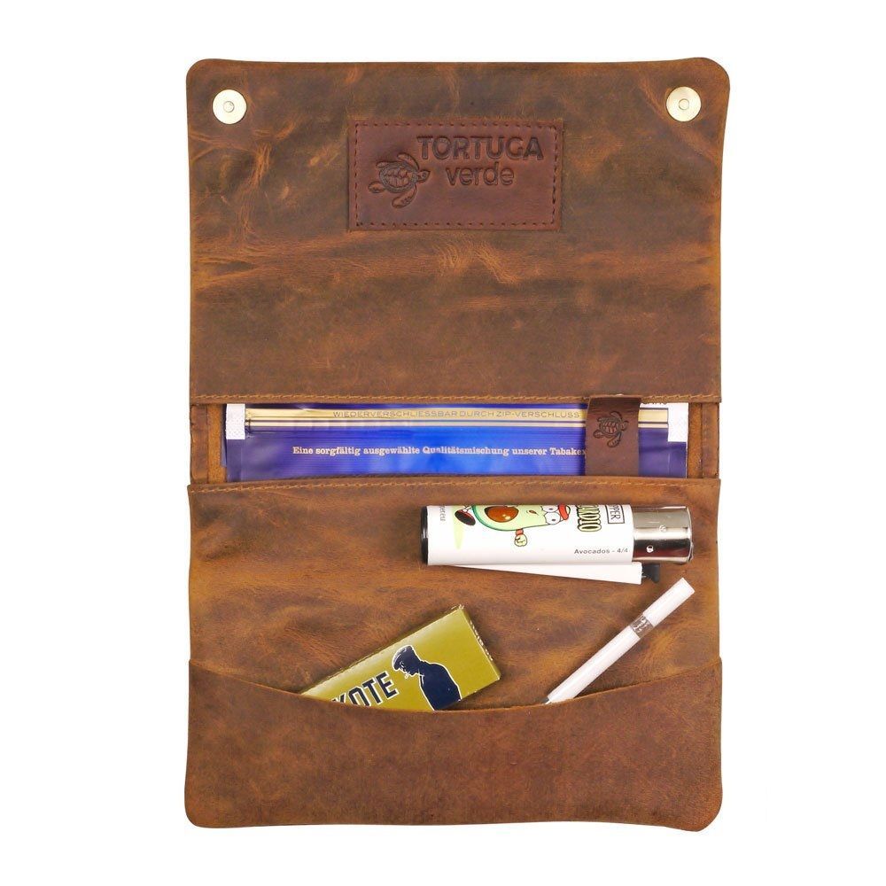 Tortuga Verde Tabakbeutel / Drehertasche Leder braun antik / hellbraun