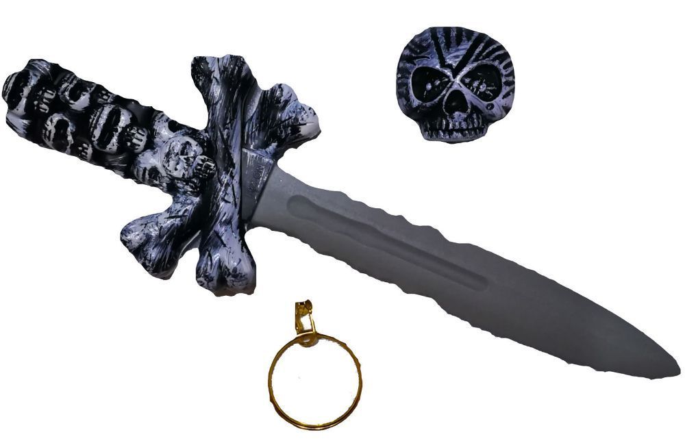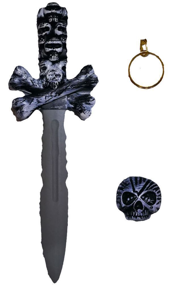 Totenkopf Dolch Augenklappe Ohrring 3 teilig Pirat Waffe Horror Halloween