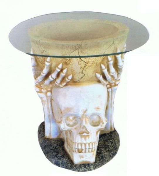 Totenkopf Tisch lebensgroß 55cm für draußen aus GFK