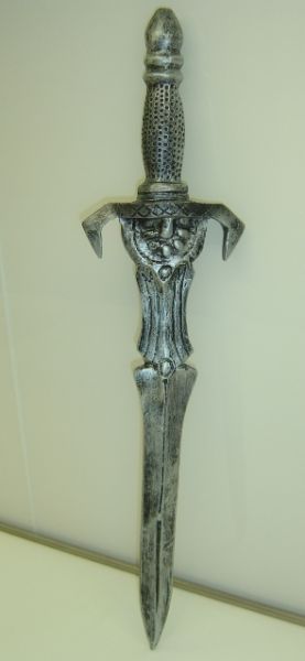 Totenschädel in Schwarz mit Schwert lebensgroß 55cm für draußen aus Polyresin