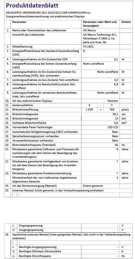 Touchscreen Monitor AG Neovo TX-1502 15 Zoll LED