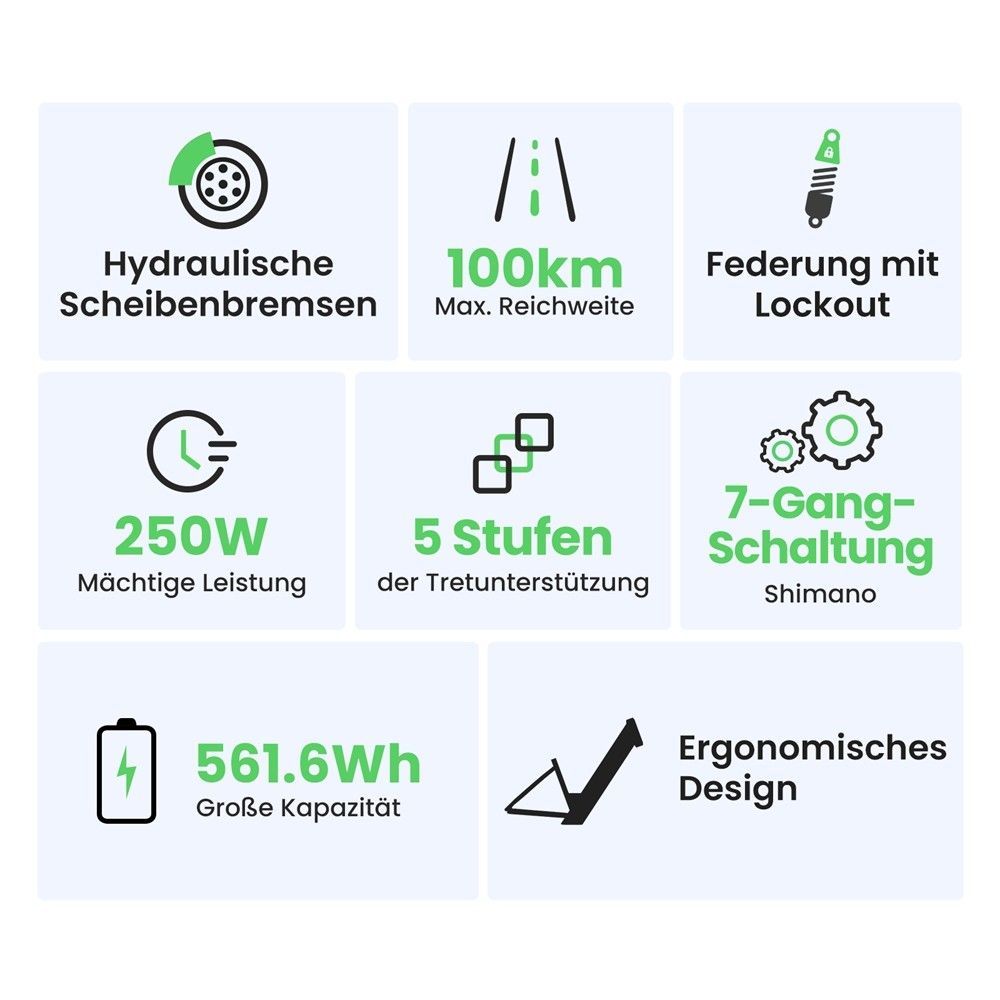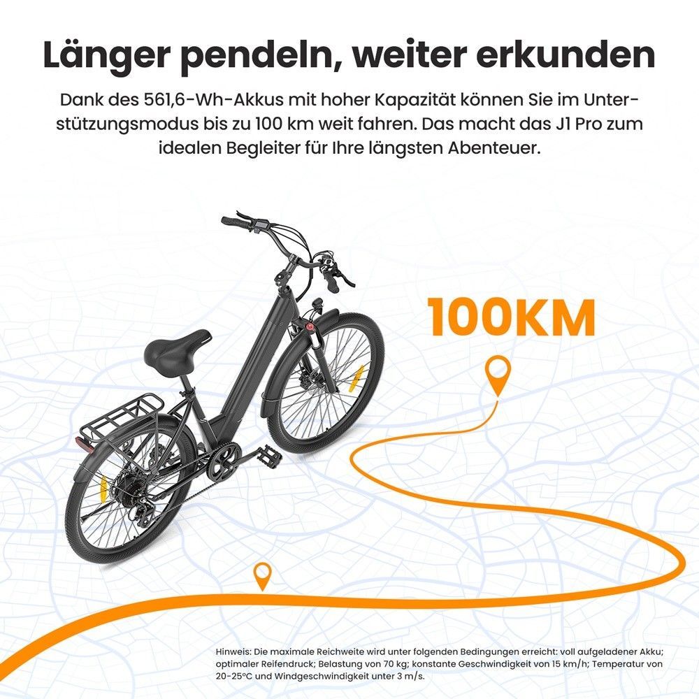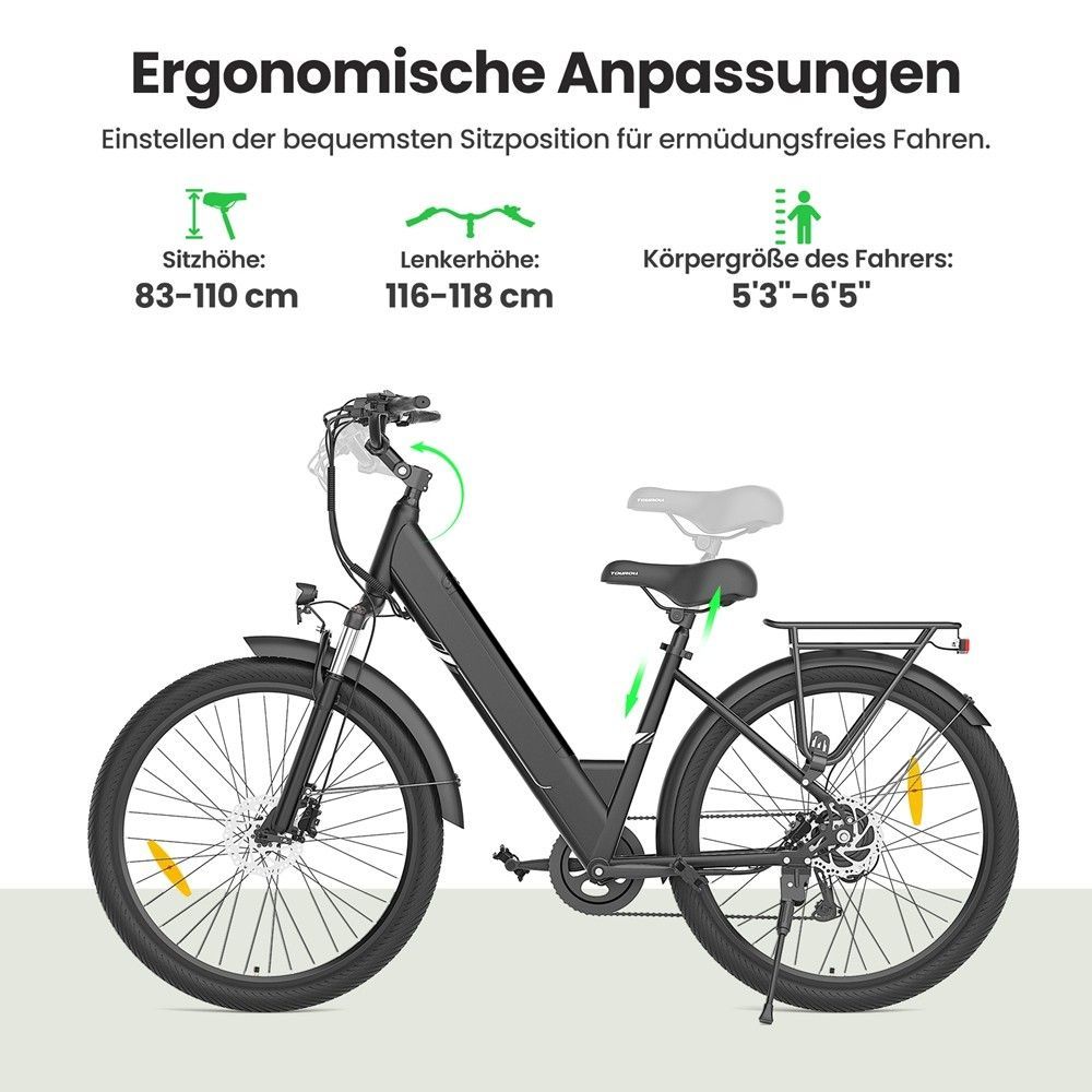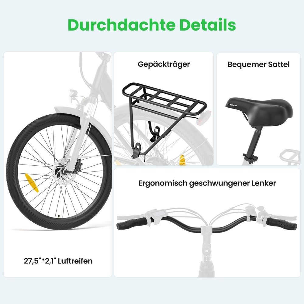 Touroll J1 Pro Hydraulische Bremse EU Stecker 36V250W 15.6AH E-Bike, Schwarz
