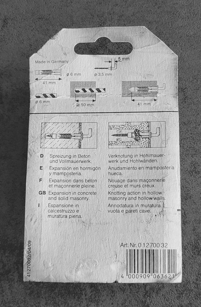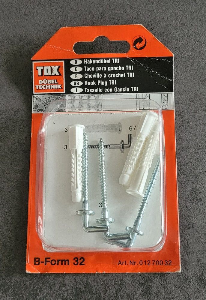 TOX Hakendübel TRI B-Form 32 mit Winkelhaken, 3 Stk, 01270032 Dübel: Ø 6mm, L 41mm Winkelhaken: Ø 3,5mm Spreizung von Beton und Vollmauerwerk... Mehr