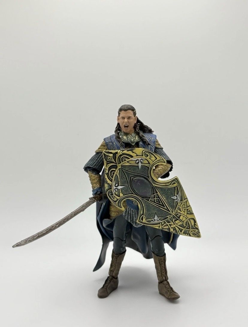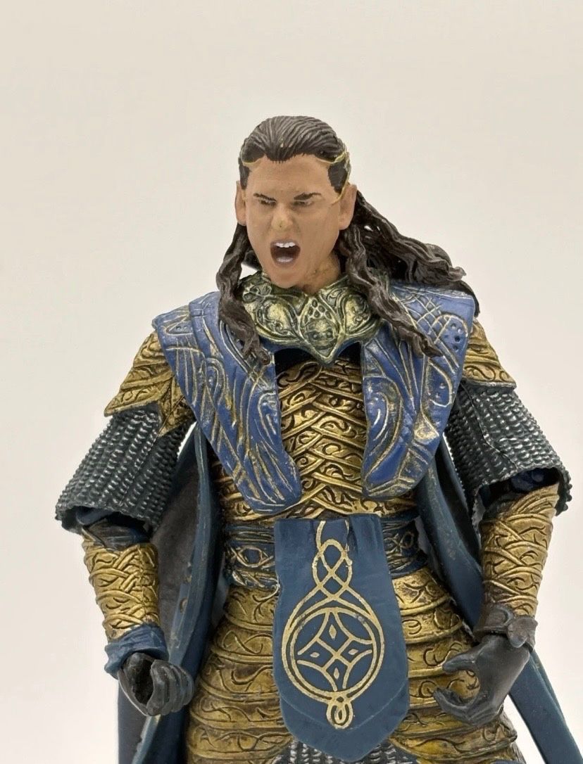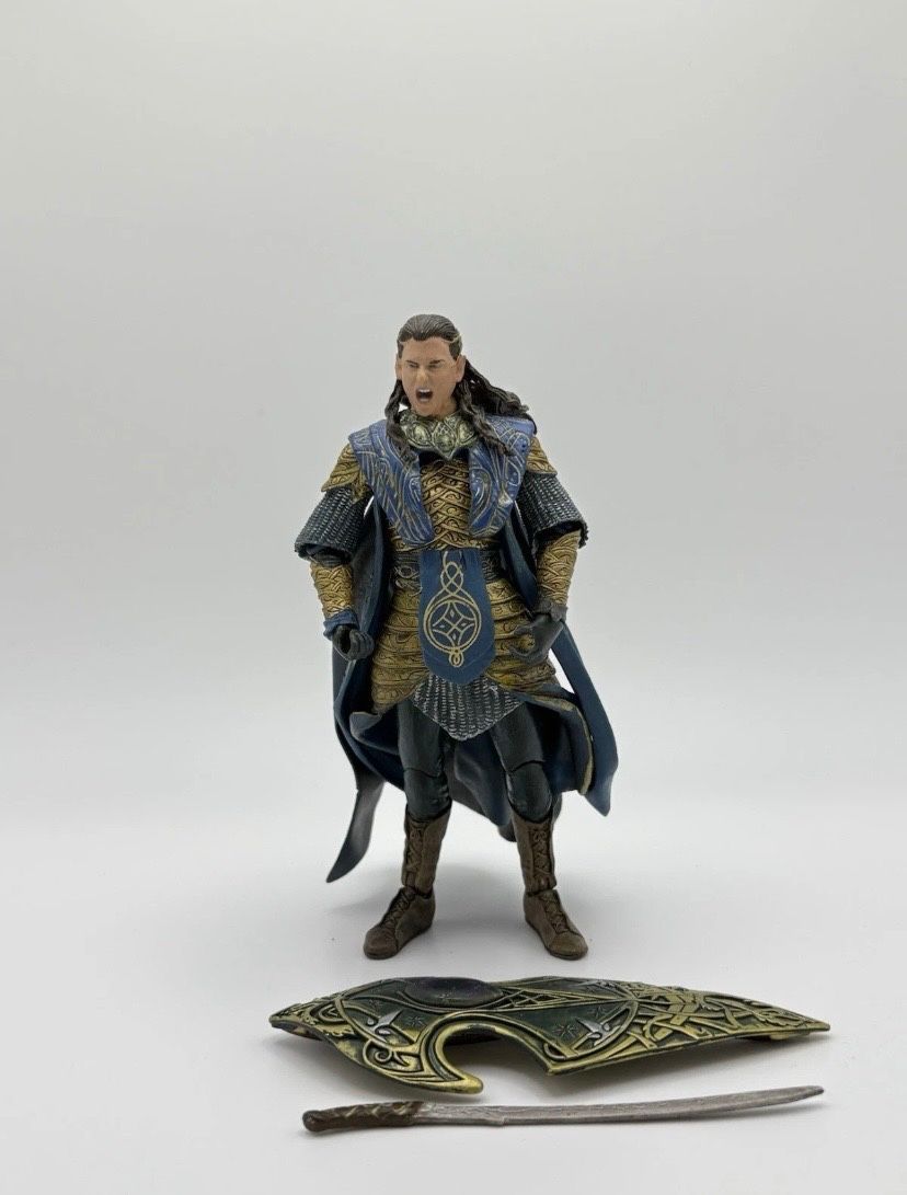 Diese detaillierte Gil-Galad-Actionfigur von ToyBiz stammt aus der beliebten The Lord of the Rings-Reihe und überzeugt mit hoher Qualität und authentischer Gestaltung. Die Figur zeigt den Elbenkönig Gil-Galad in seiner ikonischen Rüstung aus dem Zweiten Zeitalter, inklusive seiner charakteristischen