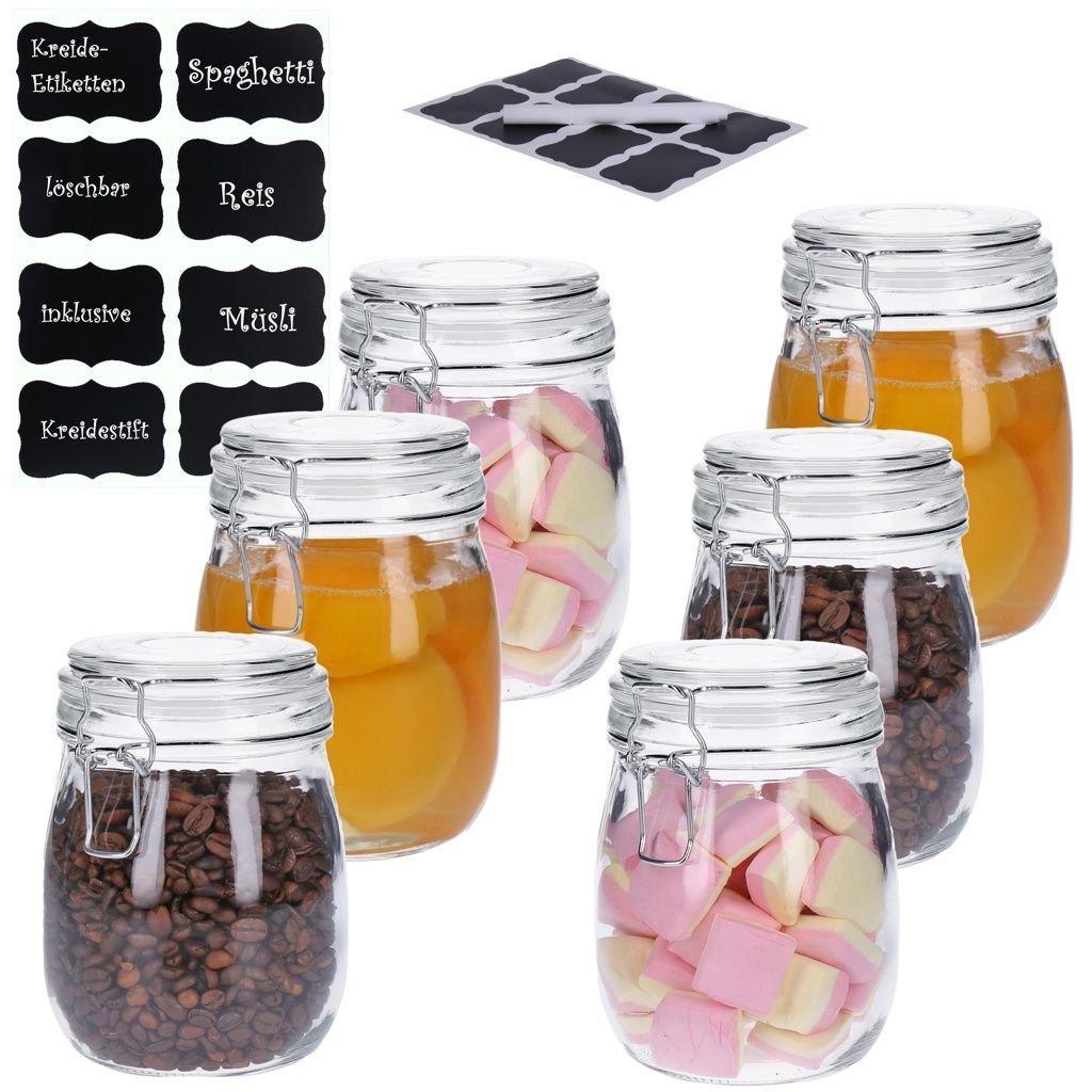 TP TP 6er Set Vorratsglas mit Bügelverschluss inkl. 8 Kreidetafelsticker & Stift runde
