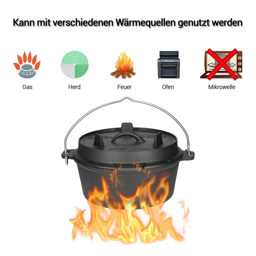 TP TP Dutch Oven aus Gusseisen, BBQ Kessel mit Füßen Deckel, robuster Feuertopf inkl