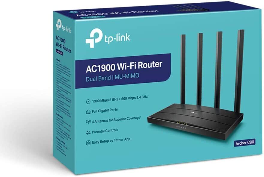 TP-Link Archer C80 Dualband WLAN Router 1300Mbits 5GHz 4 Gigabit Ports schwarz