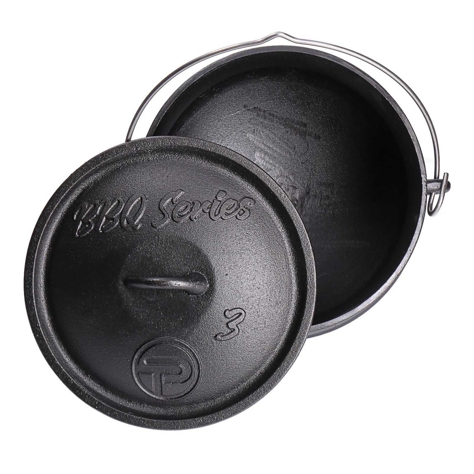 TP TP Potjie Pot - BBQ Dreifuß Dutch Oven Gusseisen, Feuerkessel mit Deckel und Füßen