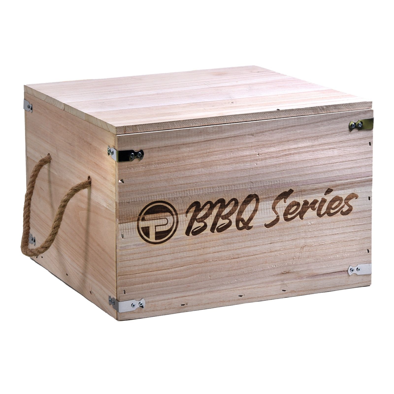 TP TP Tripod Set in Holzkiste, Dutch Oven, Feuertopf, Potjie Kessel aus Gusseisen mit