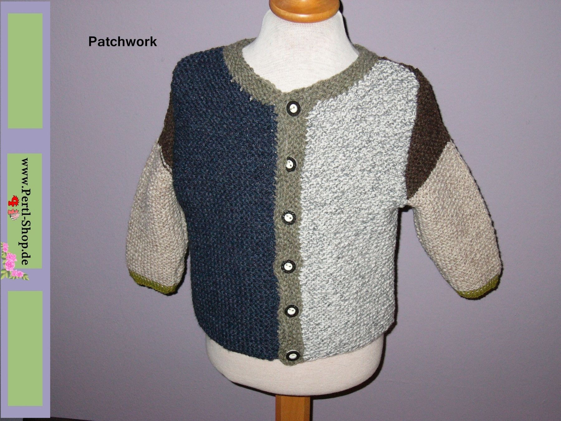 Trachten Strick Jacke Gr. 116, Kinder, Patchwork Style