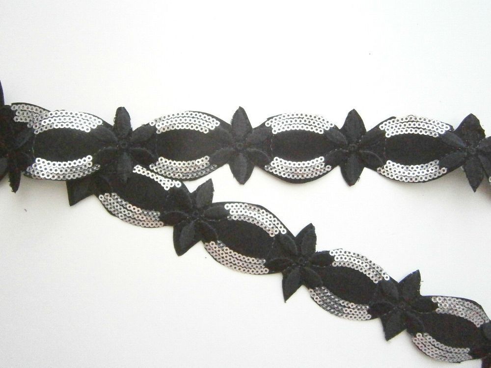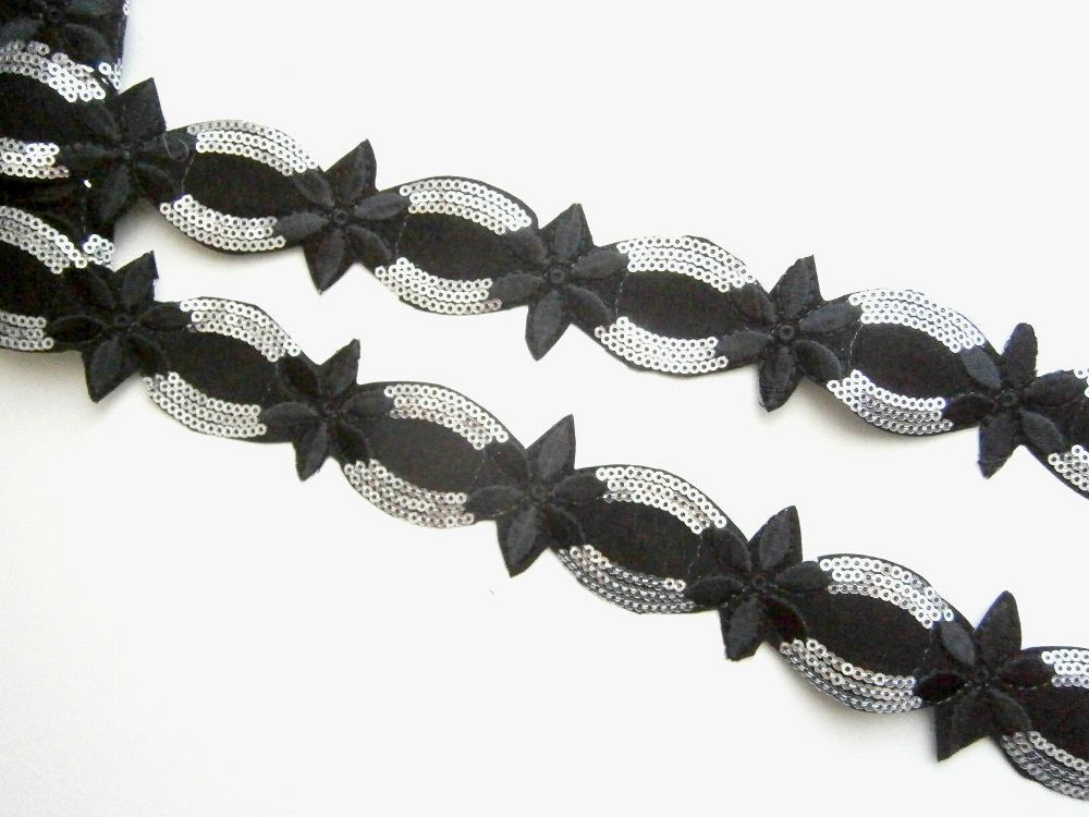 Trachtenborte, BAND , bestickt, Pailletten, Dirndl, Silber, Schwarz, Samtband , 0,5 m