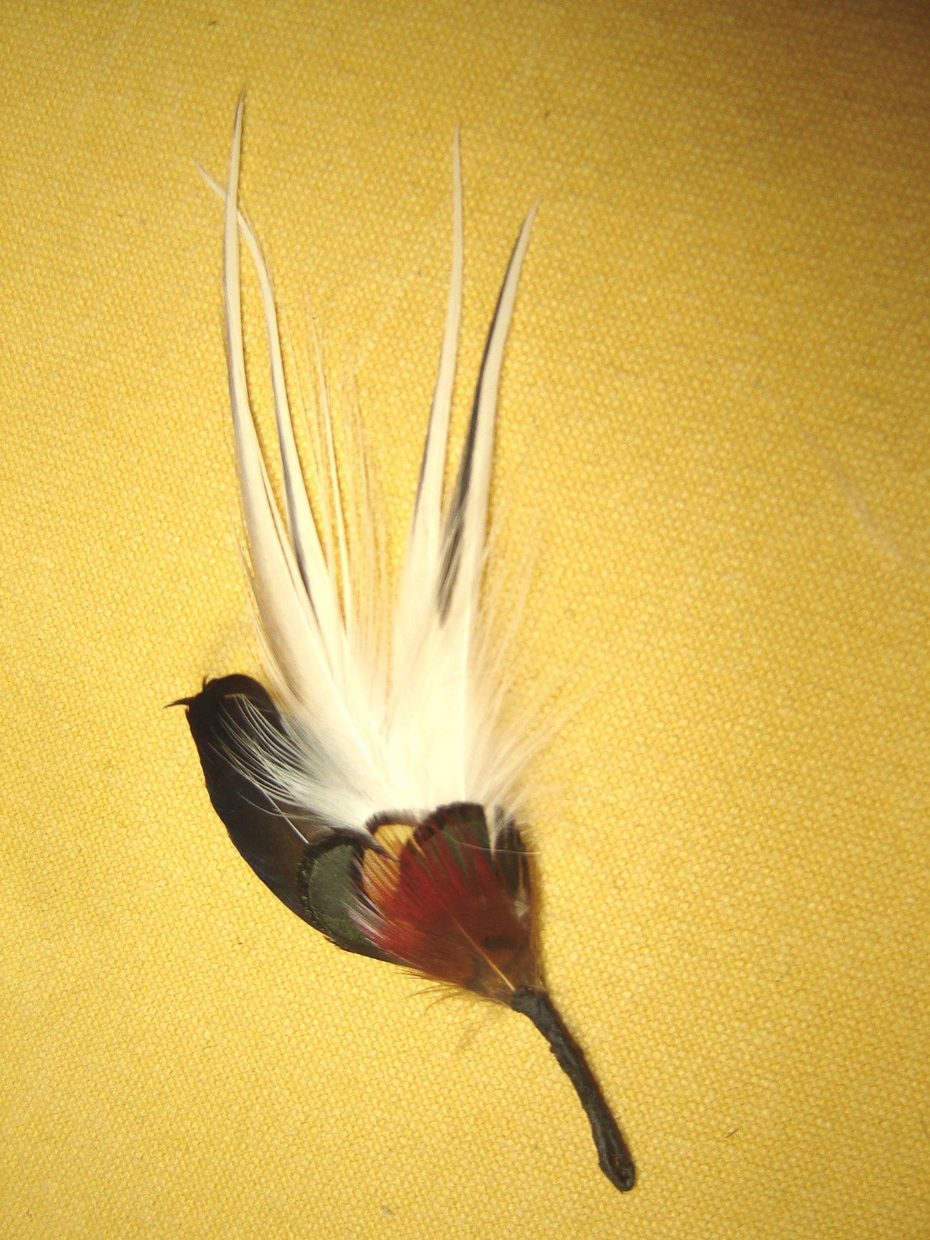 . Trachtenhutfeder Hutfeder klassische Hutfeder bayrische Tracht Einzelstück aus Altbestand schmale weiße Federn mit Erpelfeder und bunte Federn Federlänge ist ca 12 cm Natürlich werden keine Federn oder Haare von Tieren verwendet , die unter das Washingtoner Artenschutzabkommen fallen . Bitte sehen