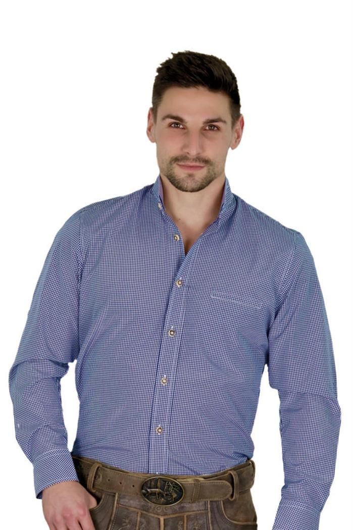 Trachtenhemd 1132 Emanuel blau minikaro elegantes Trachtenhemd mit kleinem Karomuster von Fuchs Trachtenmoden.