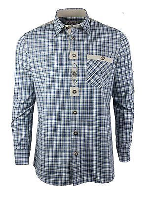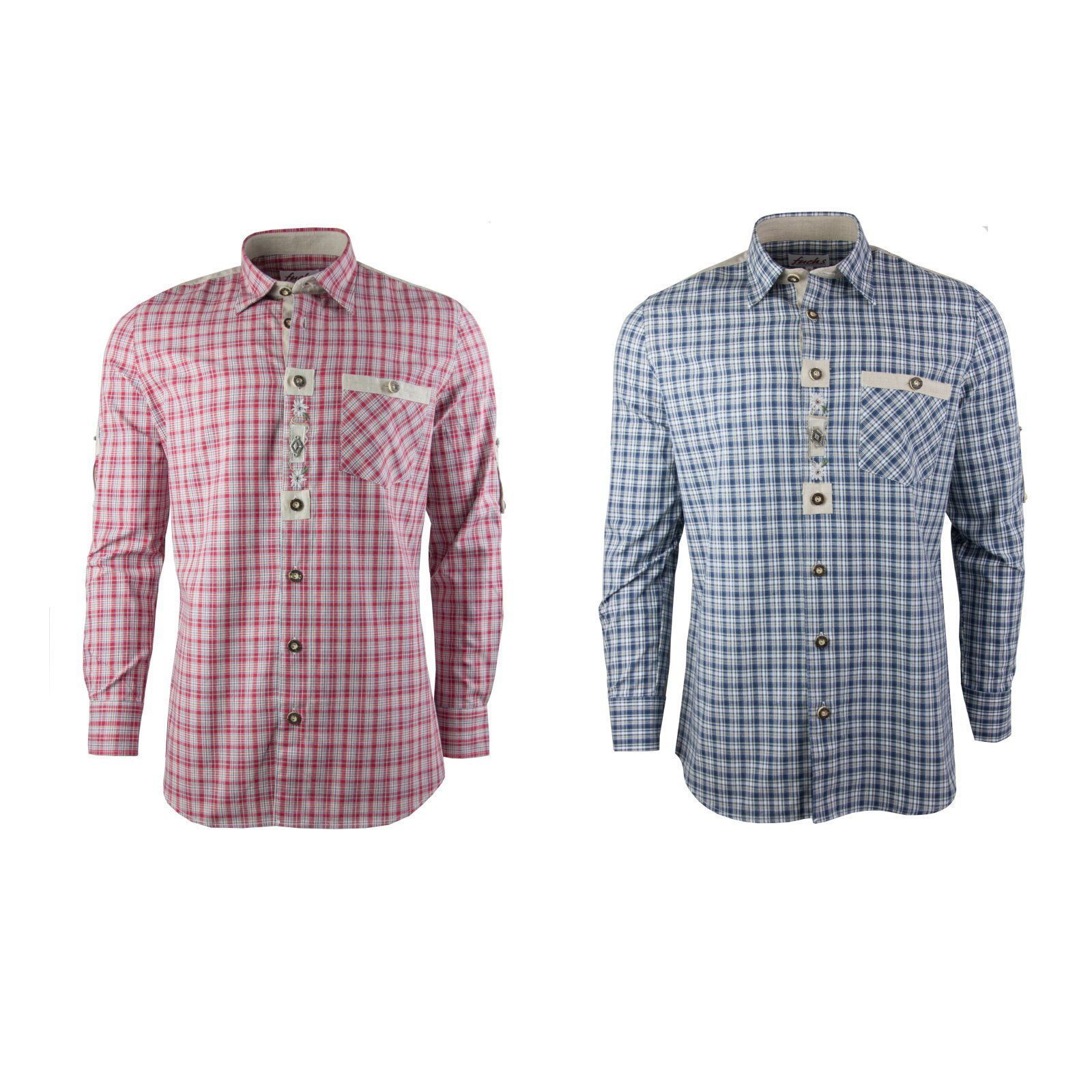 Trachtenhemd Leinen 1109 blau rot Fuchs Trachtenmoden